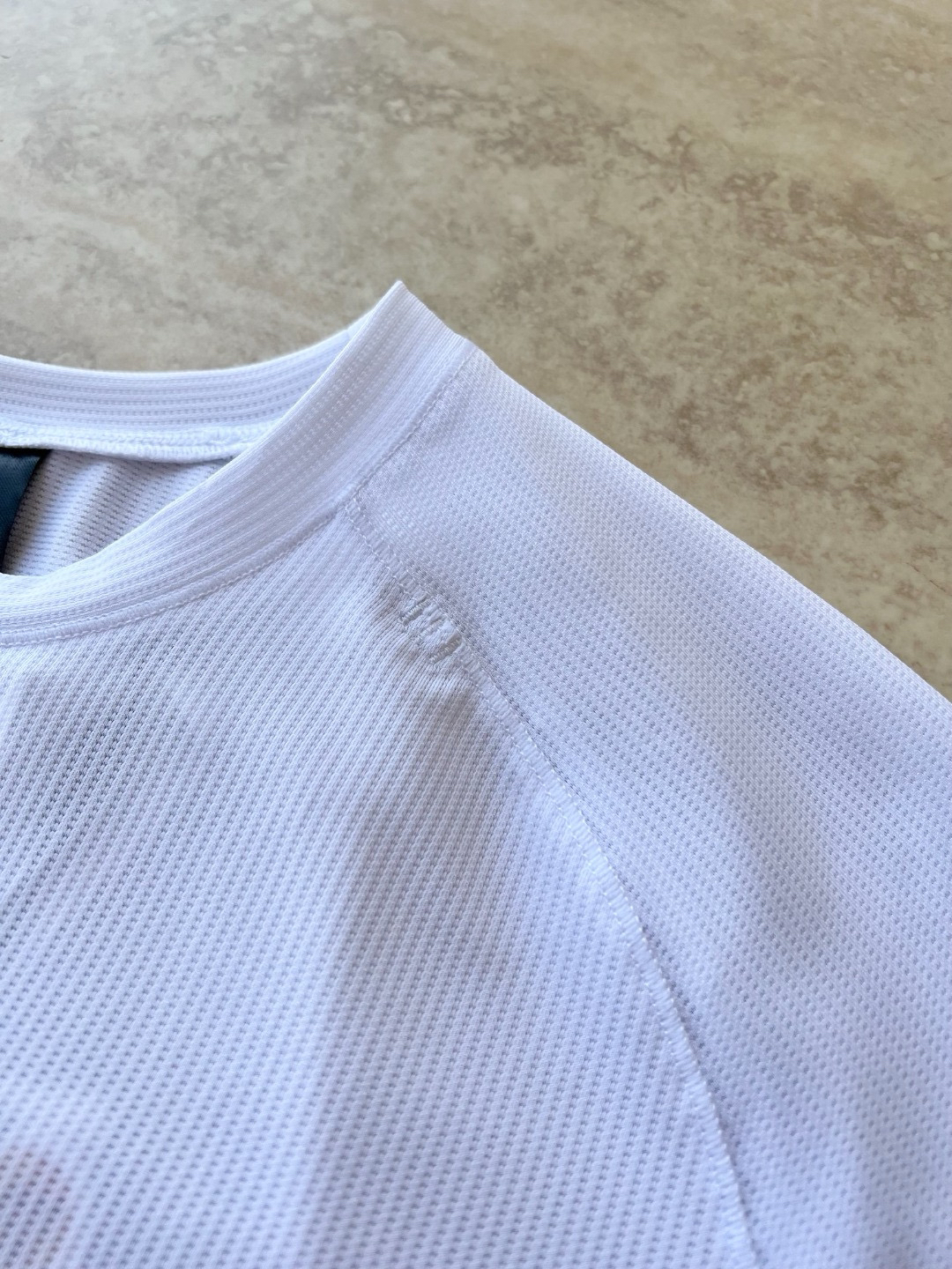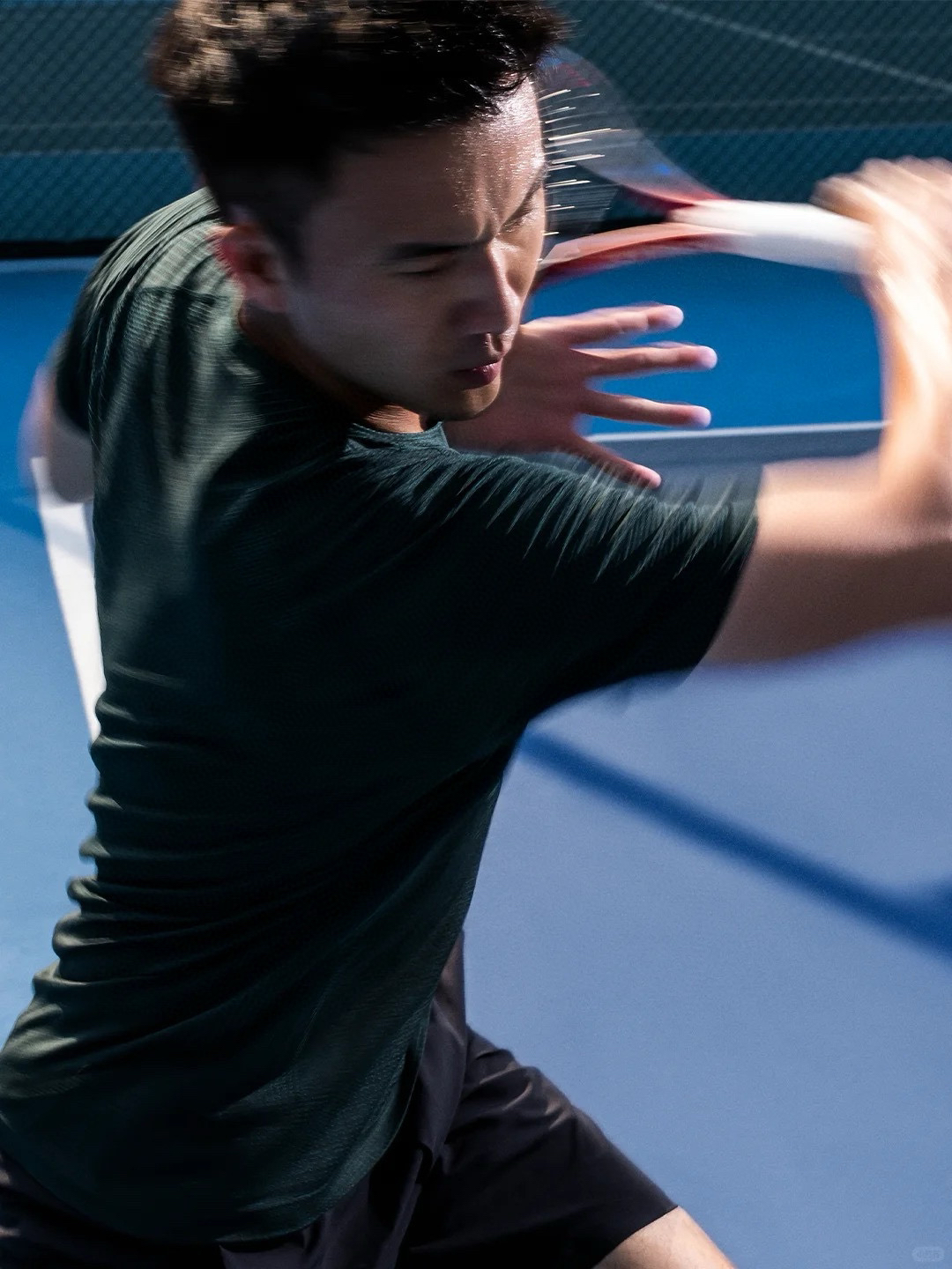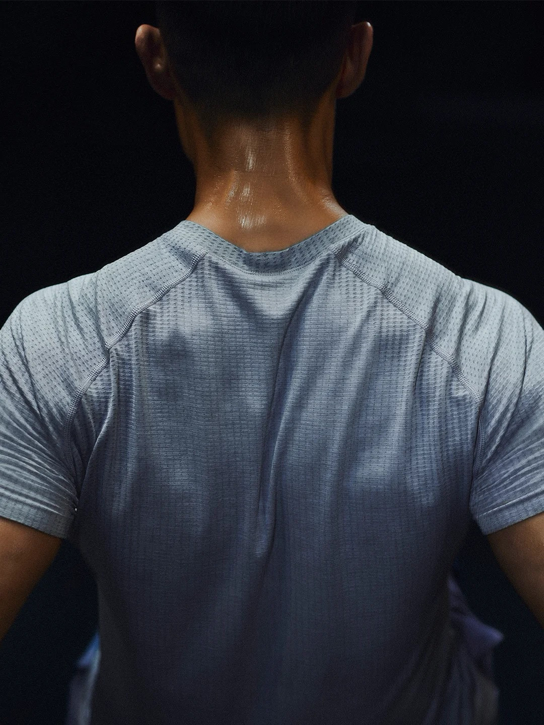 特殊的蝴蝶网眼面料结构搭配速干纤维 有成千上万透气孔设计 汗液蒸发快 轻薄不走光