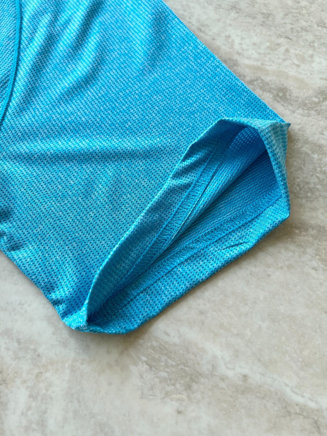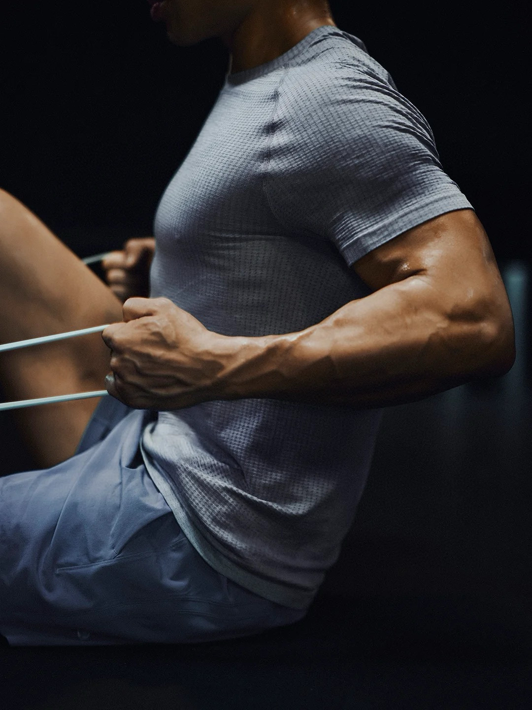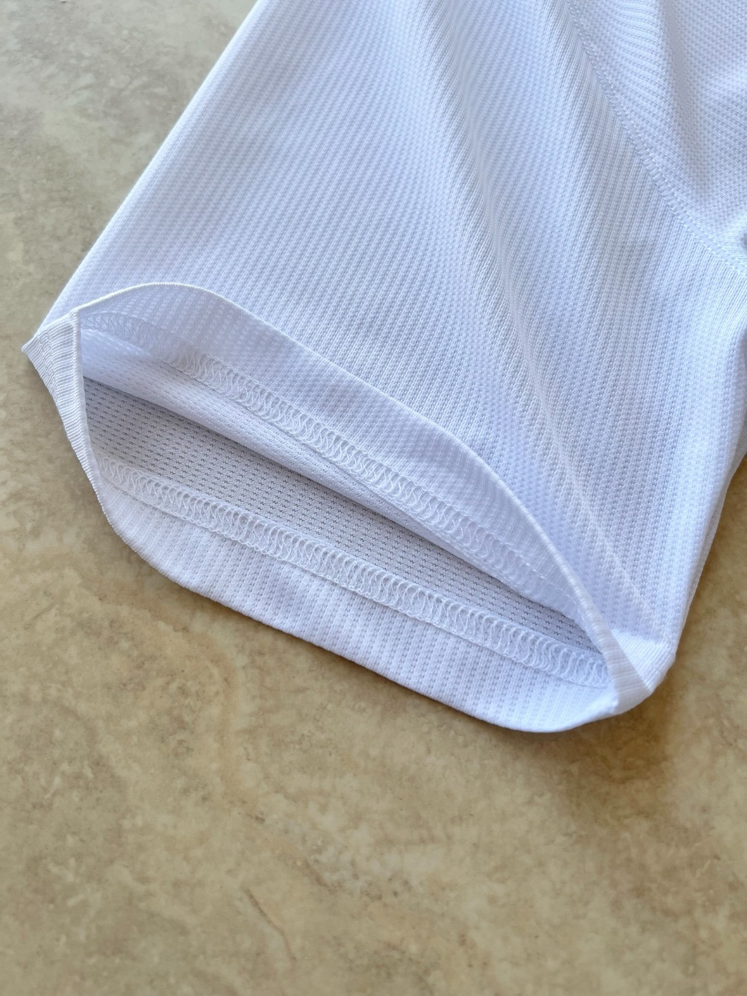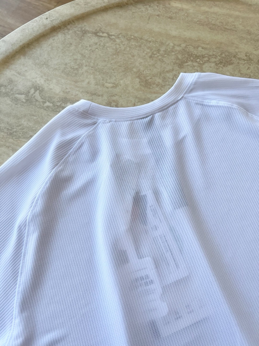特殊的蝴蝶网眼面料结构搭配速干纤维 有成千上万透气孔设计 汗液蒸发快 轻薄不走光