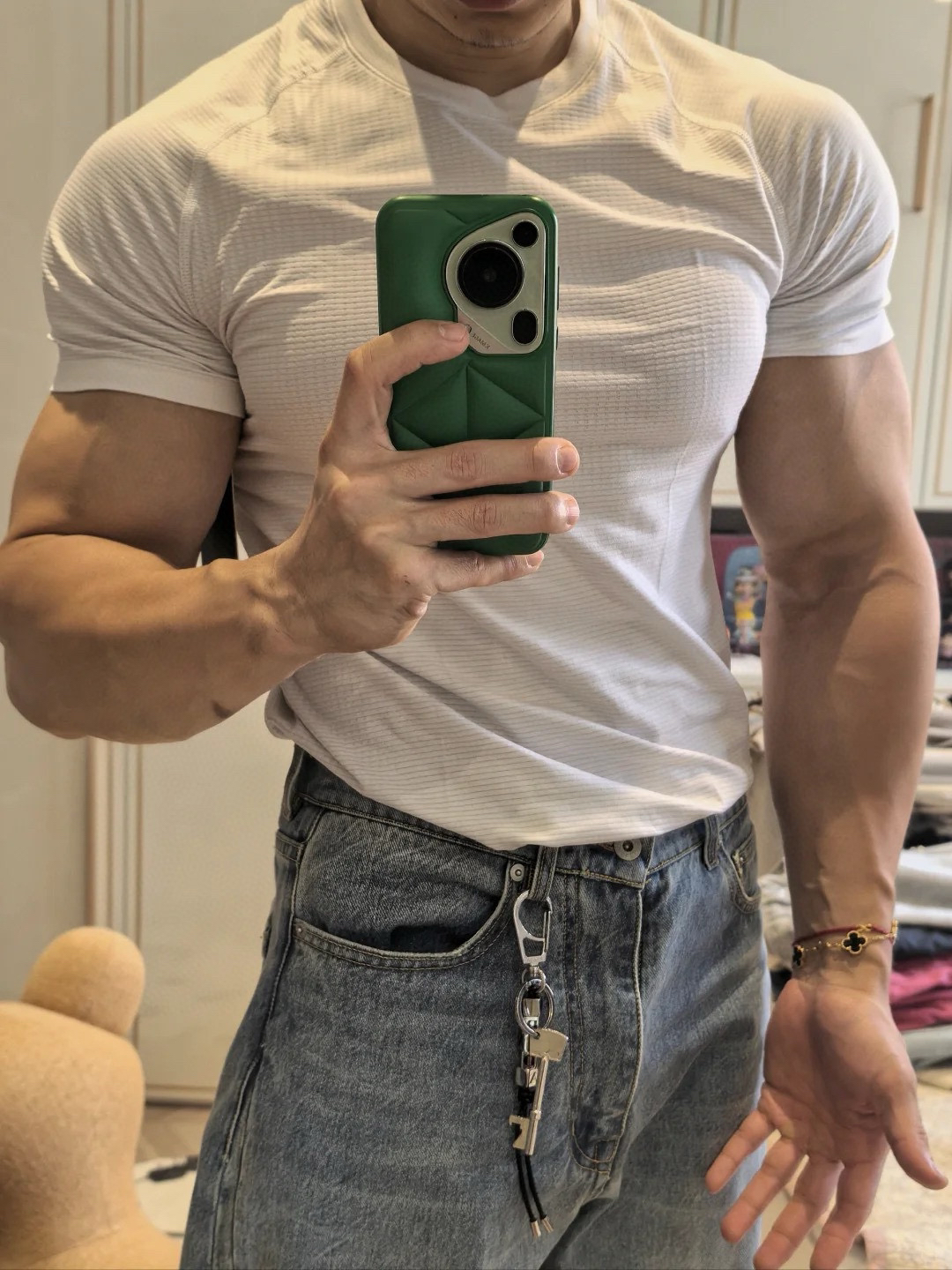 弹力很大 修身穿都很舒服很显肌肉 喜欢宽松点就选大一码