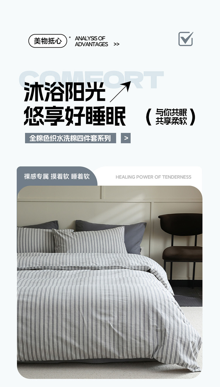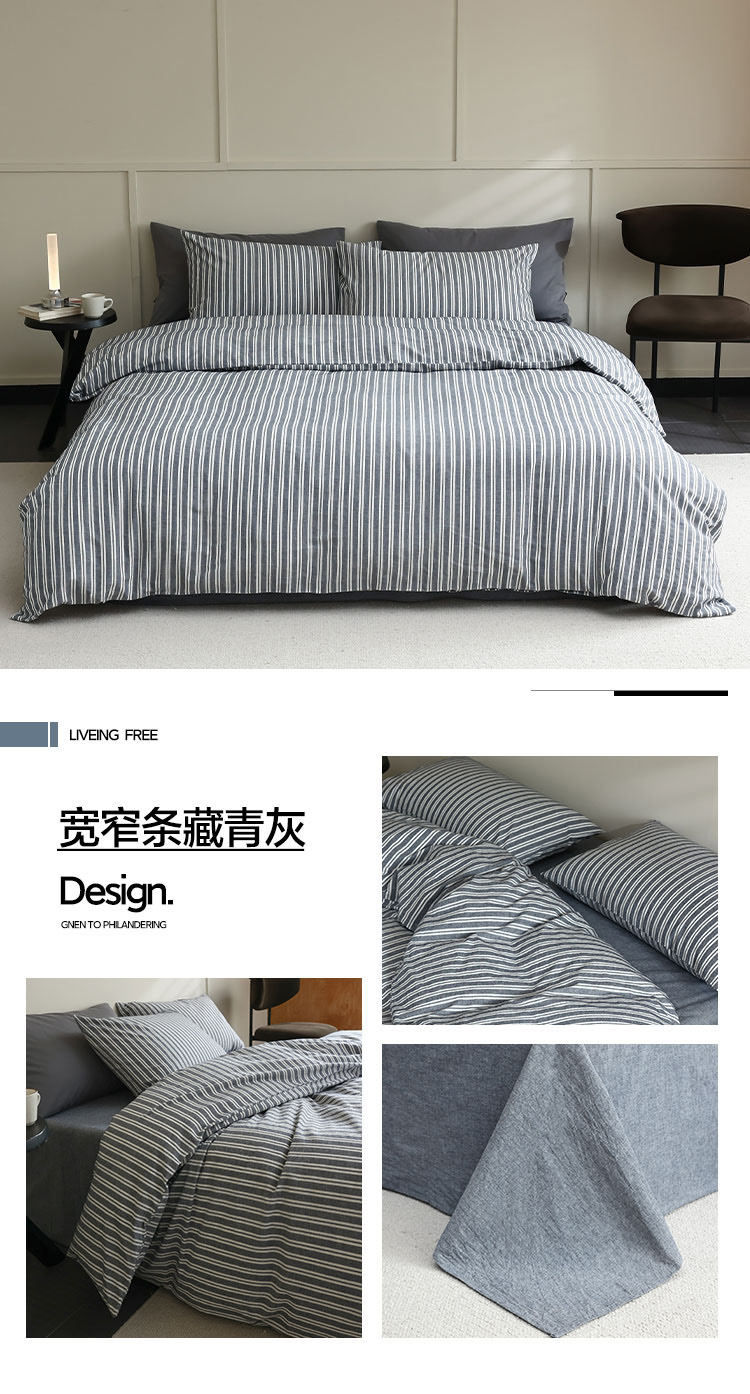 【宽窄条四件套】水洗棉四件套条纹纯棉床品套件条子全棉宽窄条件套