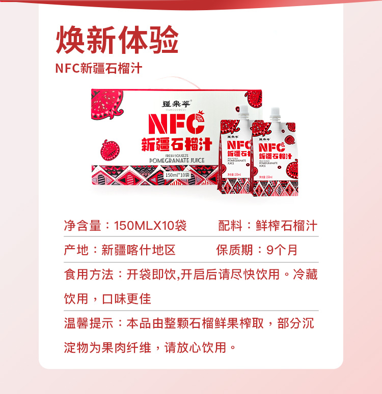 【温馨提示】如有沉淀为果肉成分,请放心饮用。如有渗漏胀袋现象请勿开启,并请联系服务热线进行更换。