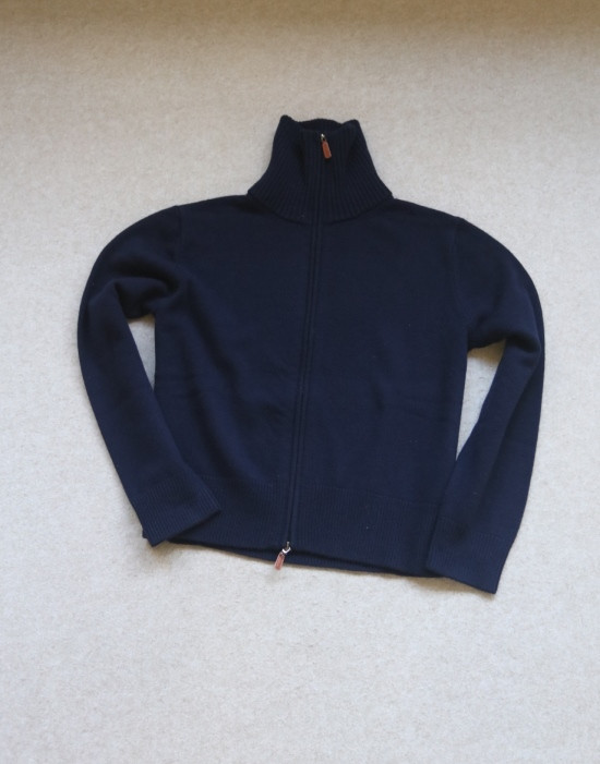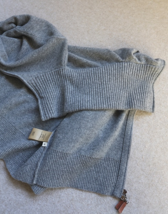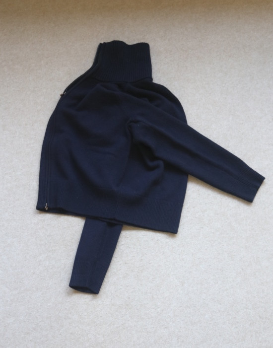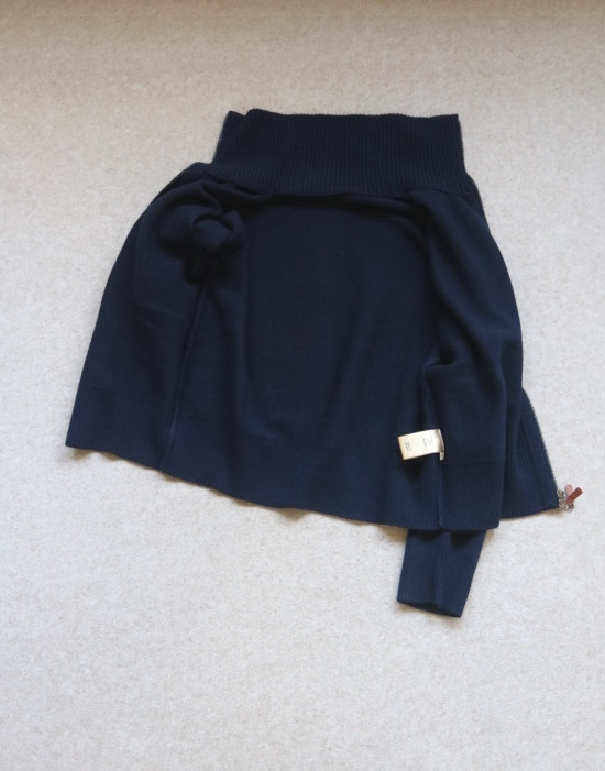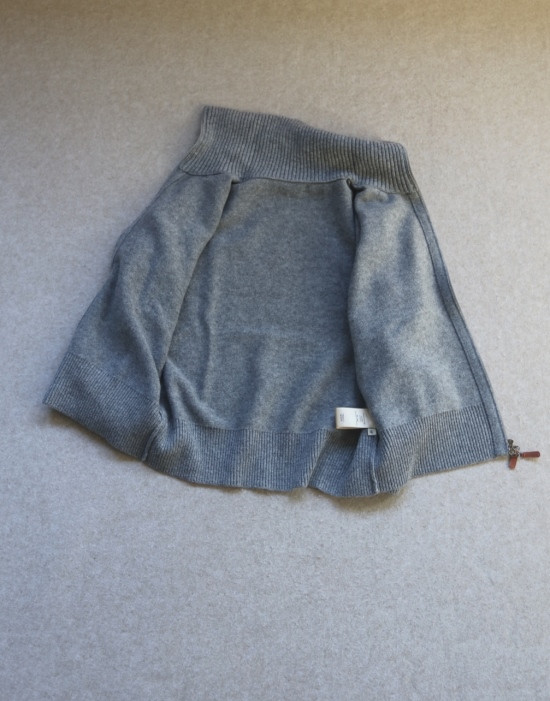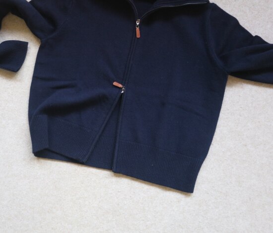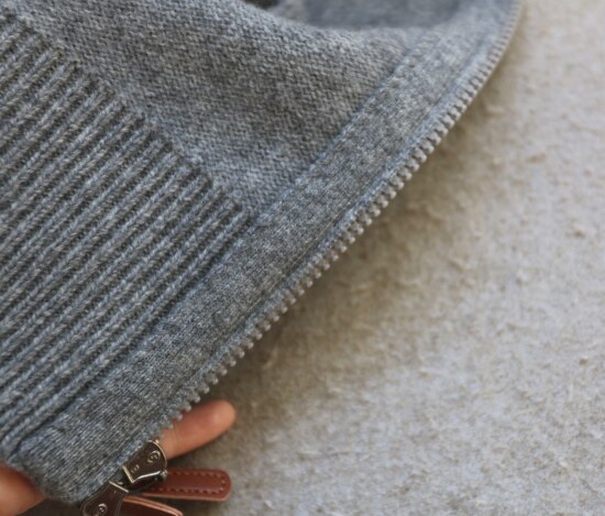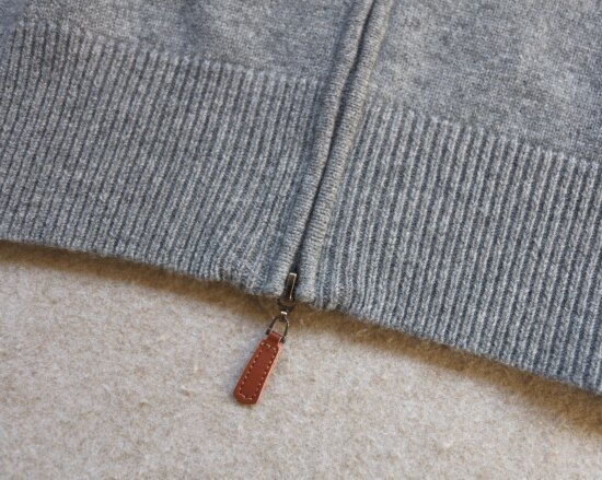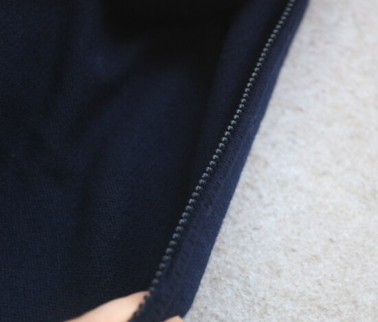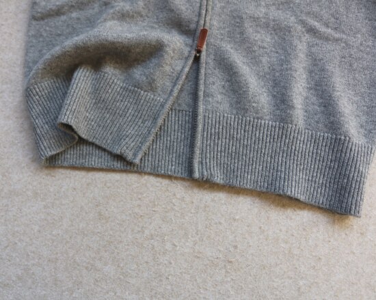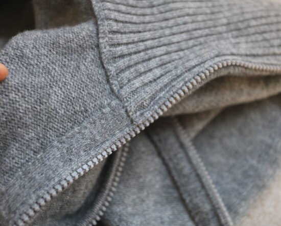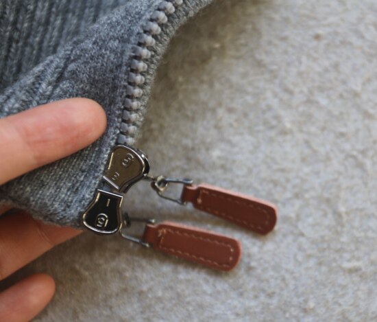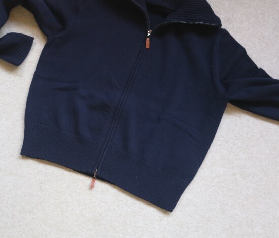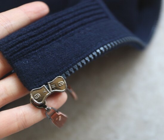 前襟双开拉链头 两边鼓起的门襟贴边条 里层还有加固压条 都是针织出来的