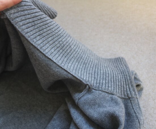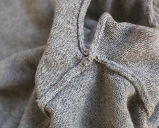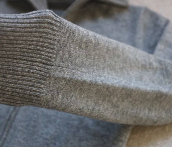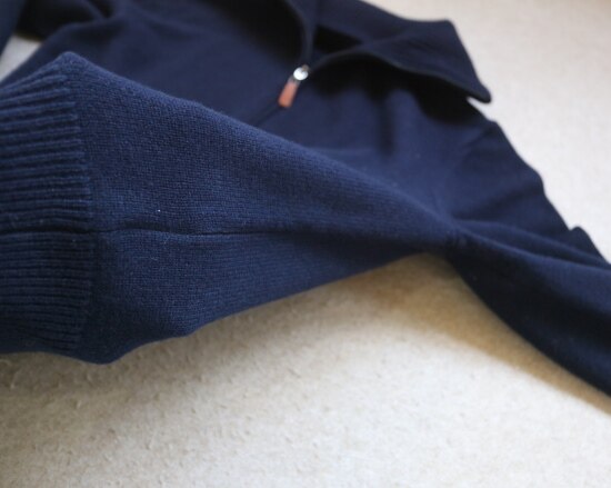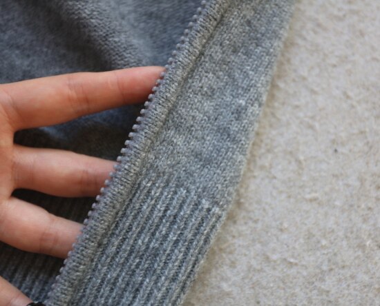 袖筒 采用上下针过渡 会有类似罗文边的花样 很典型的手工套扣缝合工艺