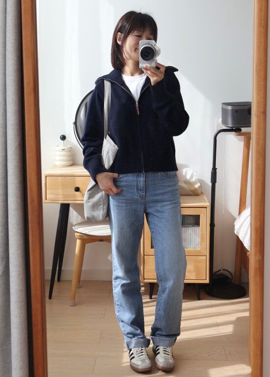 虽是小宽松 但这种小短款 穿起来就显得很立整 白Tee+牛仔裤 就很简单高级
