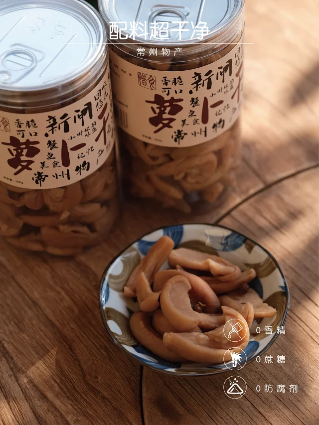 作为常州特产之一,别看新闸萝卜干貌不出众,是有百年历史韵味的,古运河边,青砖黛瓦,一碟萝卜干(最初名为“茶干”),一碟兰花豆,一碗老陈酒,细嚼、慢饮、闲品,那是喧嚣都市中久违的民俗风情画