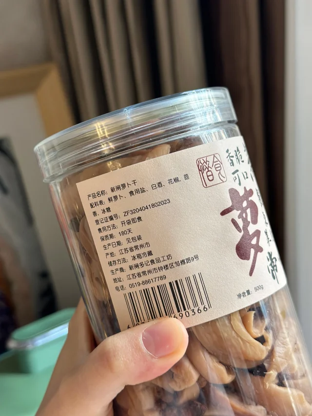 【配料表】鲜萝卜、食用盐、白酒、花椒、苟香、冰糖