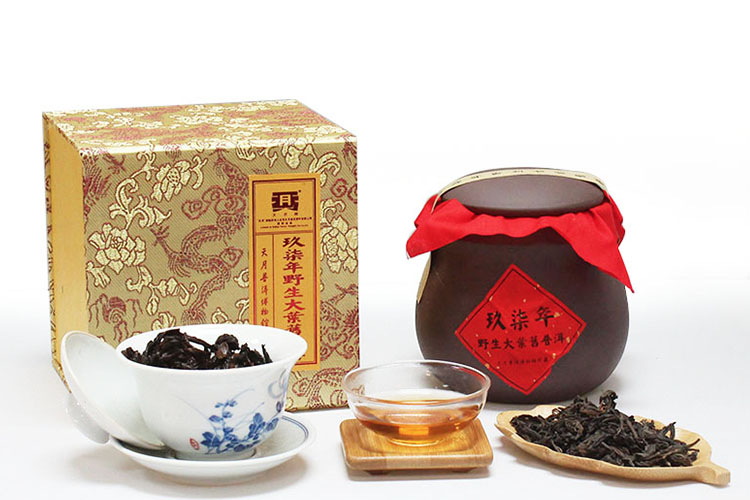 普洱茶自古以来就是皇室所推崇的收藏、馈赠佳品,是身份与品味的象征,时逢盛世,在当今社会更成为广受喜爱的饮用佳品。玖柒年野生大叶旧普洱茶是天月普洱博物馆收藏多年的老茶品,原料源自勐海地区布朗山的古树野生大叶晒青毛茶,自然存放保存至今,尤为珍贵。干茶外形整齐均匀,呈乔木大叶状,色泽为红褐色;汤色酒红透亮,有淡淡枣香,滋味醇厚,回甘迅速;叶底均匀油亮,经久耐泡。“人皆可饮,越旧价越高”,具有极高的典藏价值。