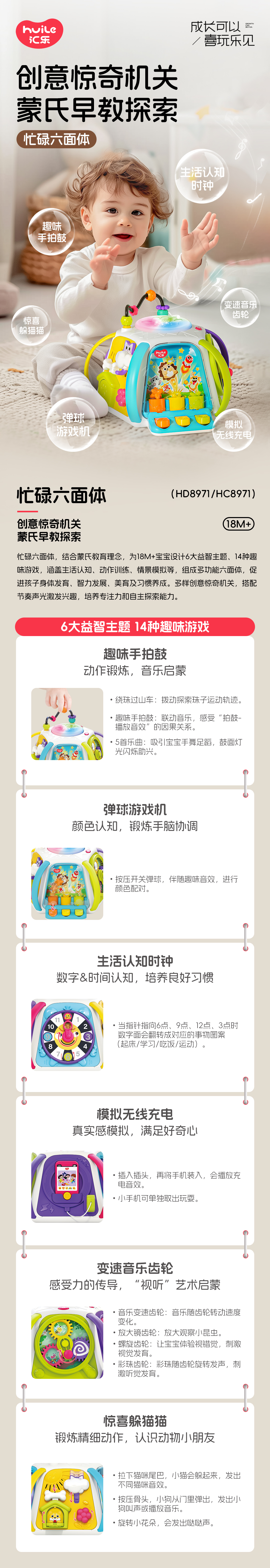 汇乐六面体婴儿玩具手拍鼓0-1岁多功能早教百宝箱拍拍鼓周岁礼物