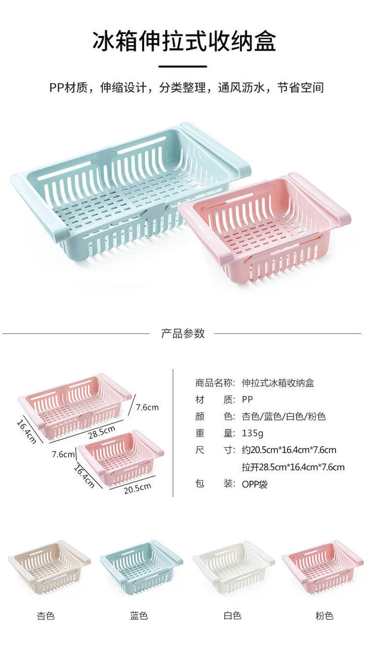 【抖音同款】冰箱托盘篮可伸缩多功能收纳盒果蔬沥水篮茶几储物盒
