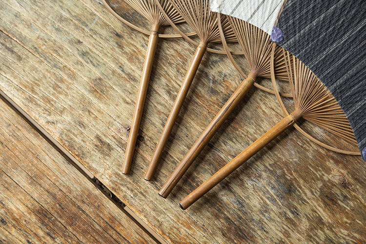 扇柄用碳化老竹而制,