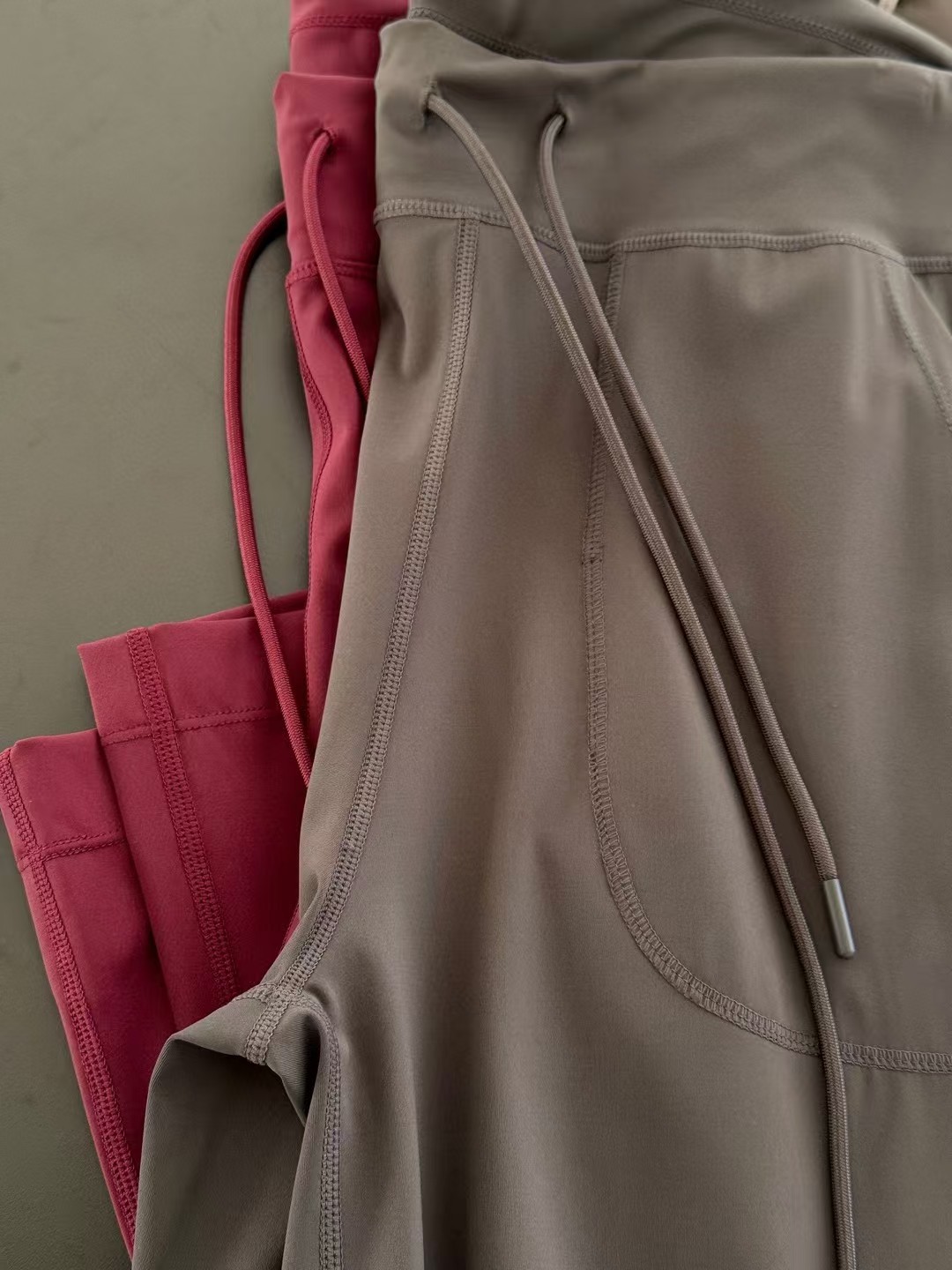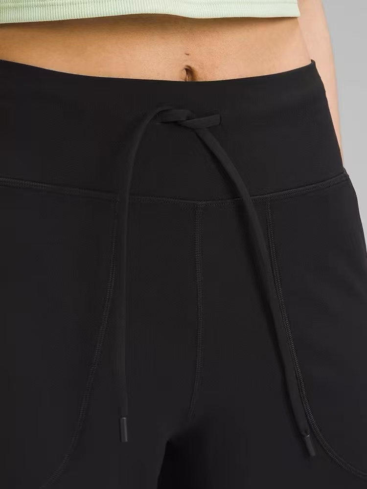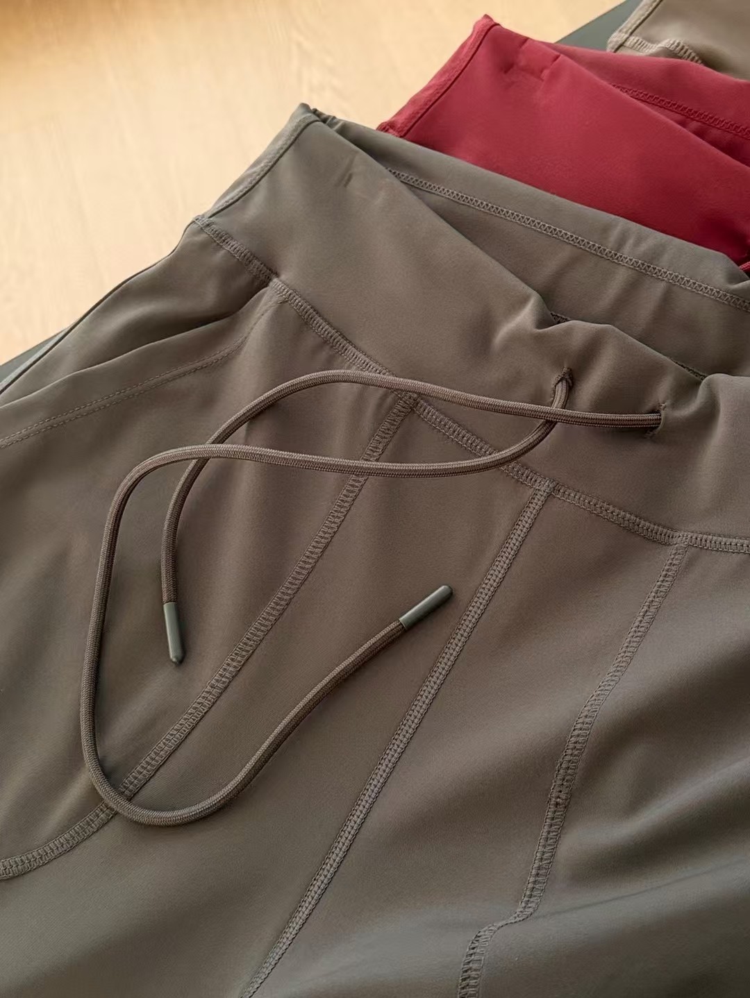 加高8.5cm宽腰头,收腹束腰强调腰线,视觉提升腰线显腿长!腰头外置弹力抽绳可以绑结固定,抽绳头带logo~