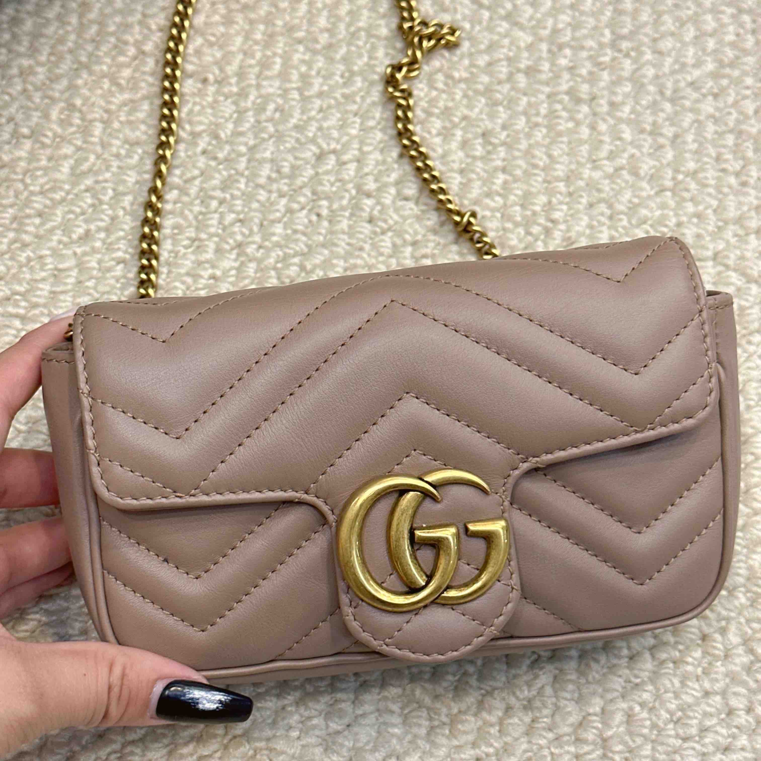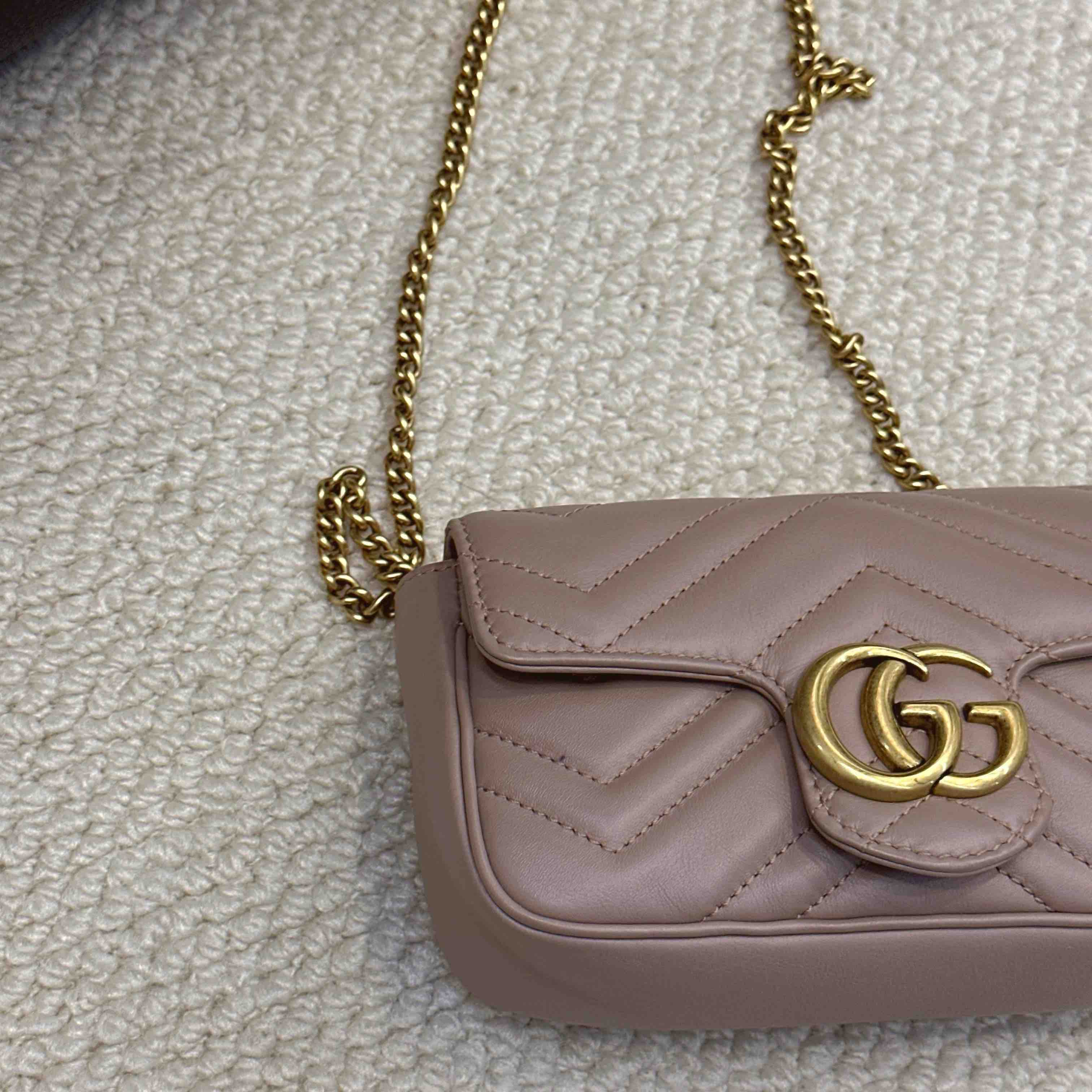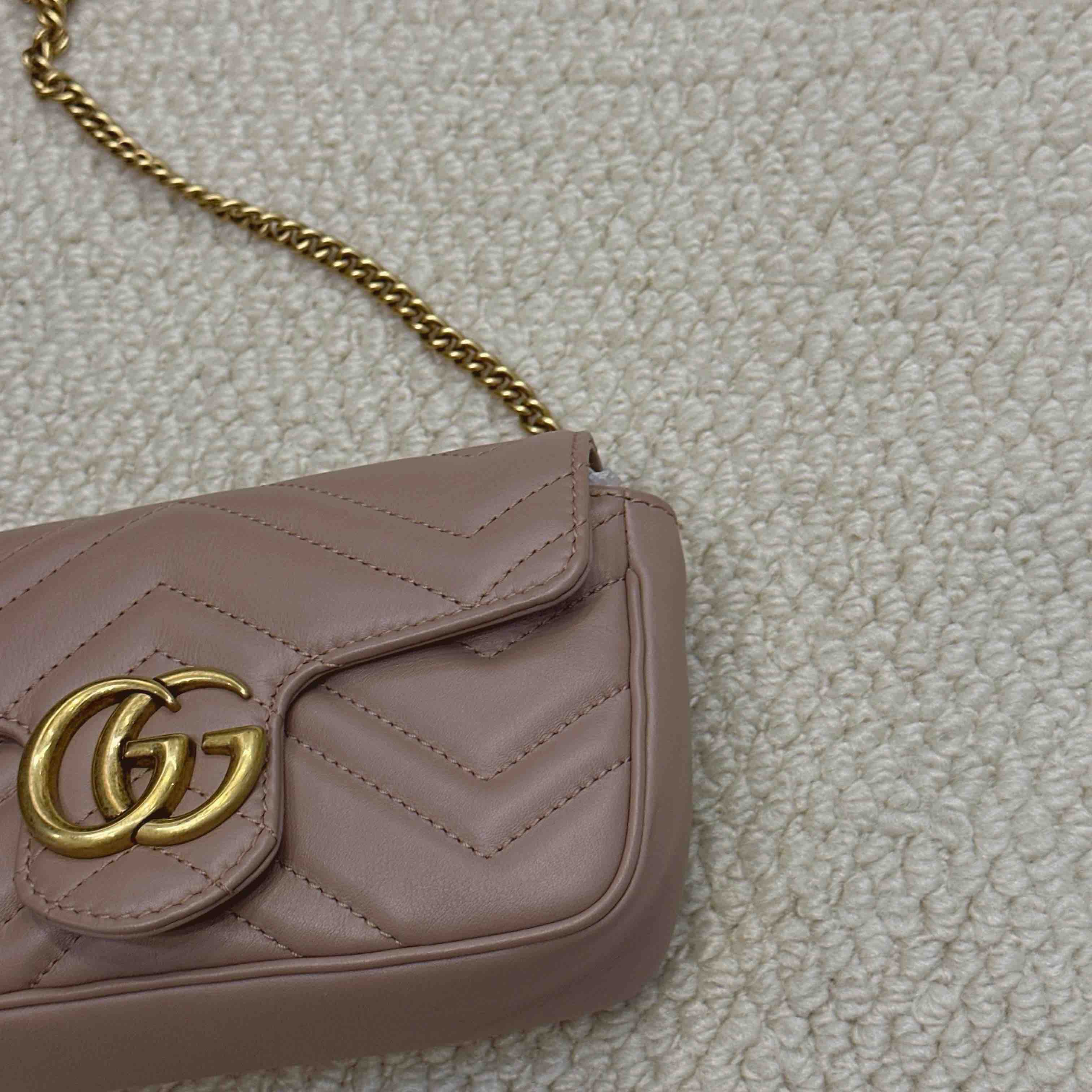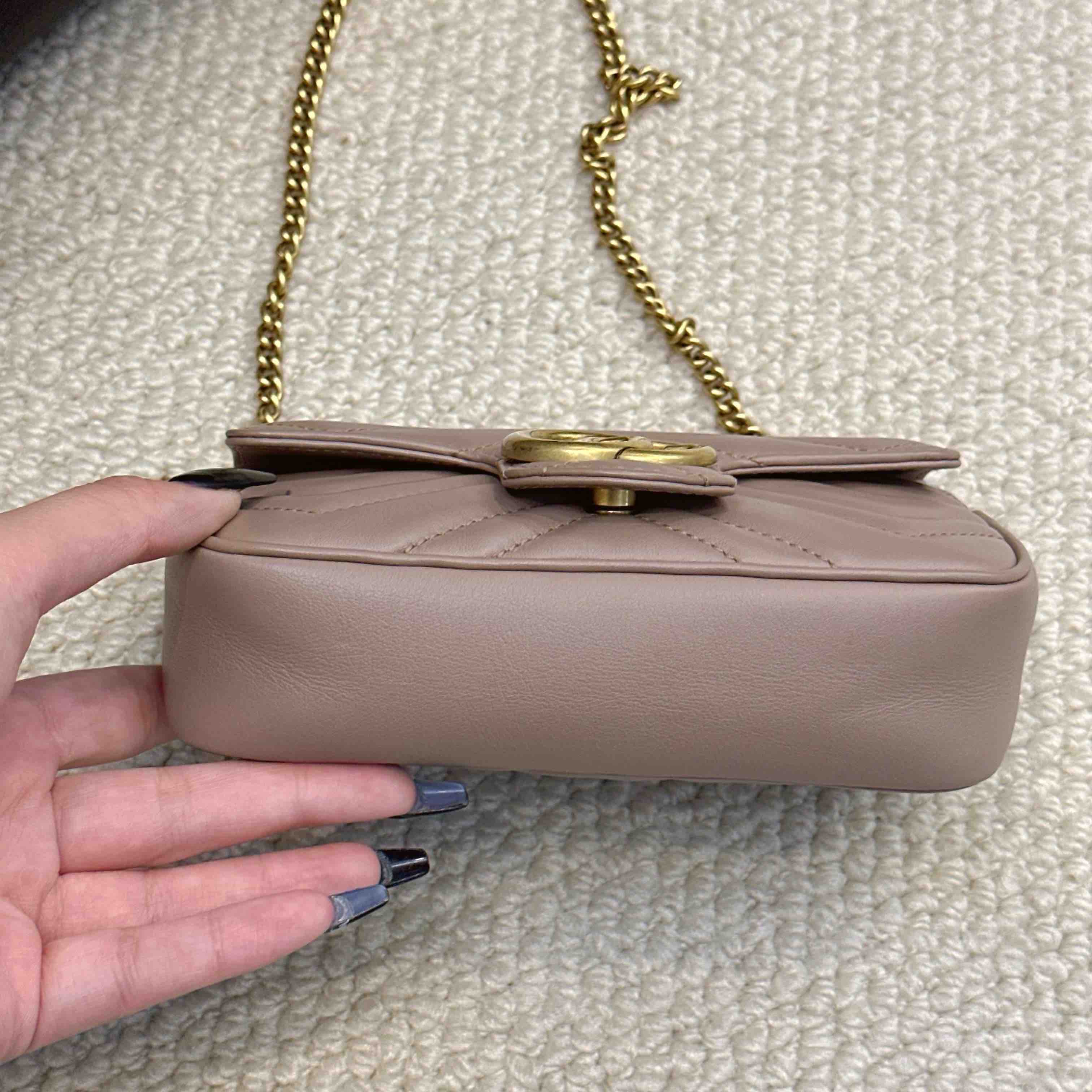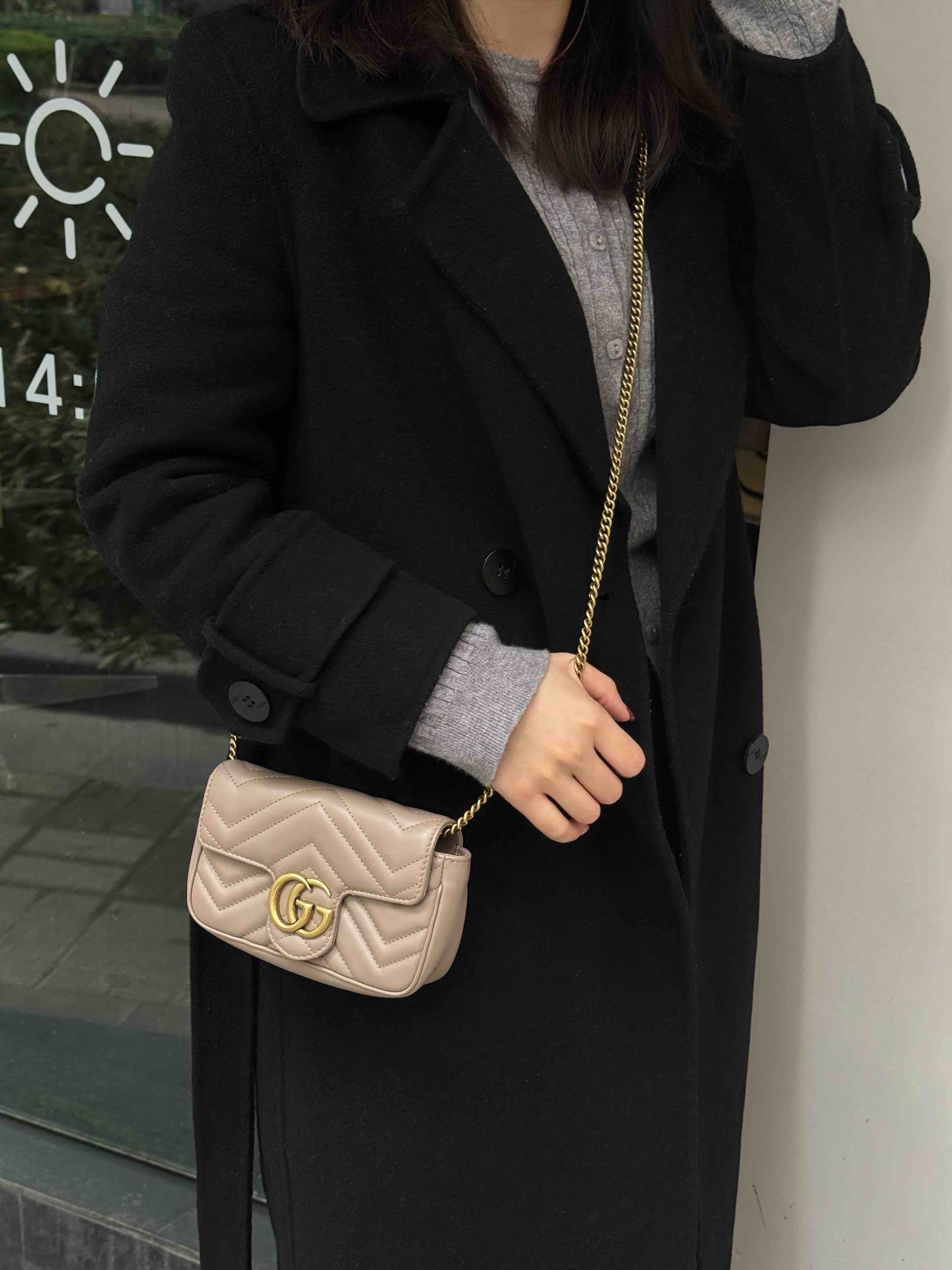【商品详情】💰4200!正品二手 Gucci 双g 马蒙 牛皮 灰色 mini 斜挎包🖤 97新 17x9 配件:肩带、龙虾扣。五金正常使用痕迹 包身轻微放置感 整体不错