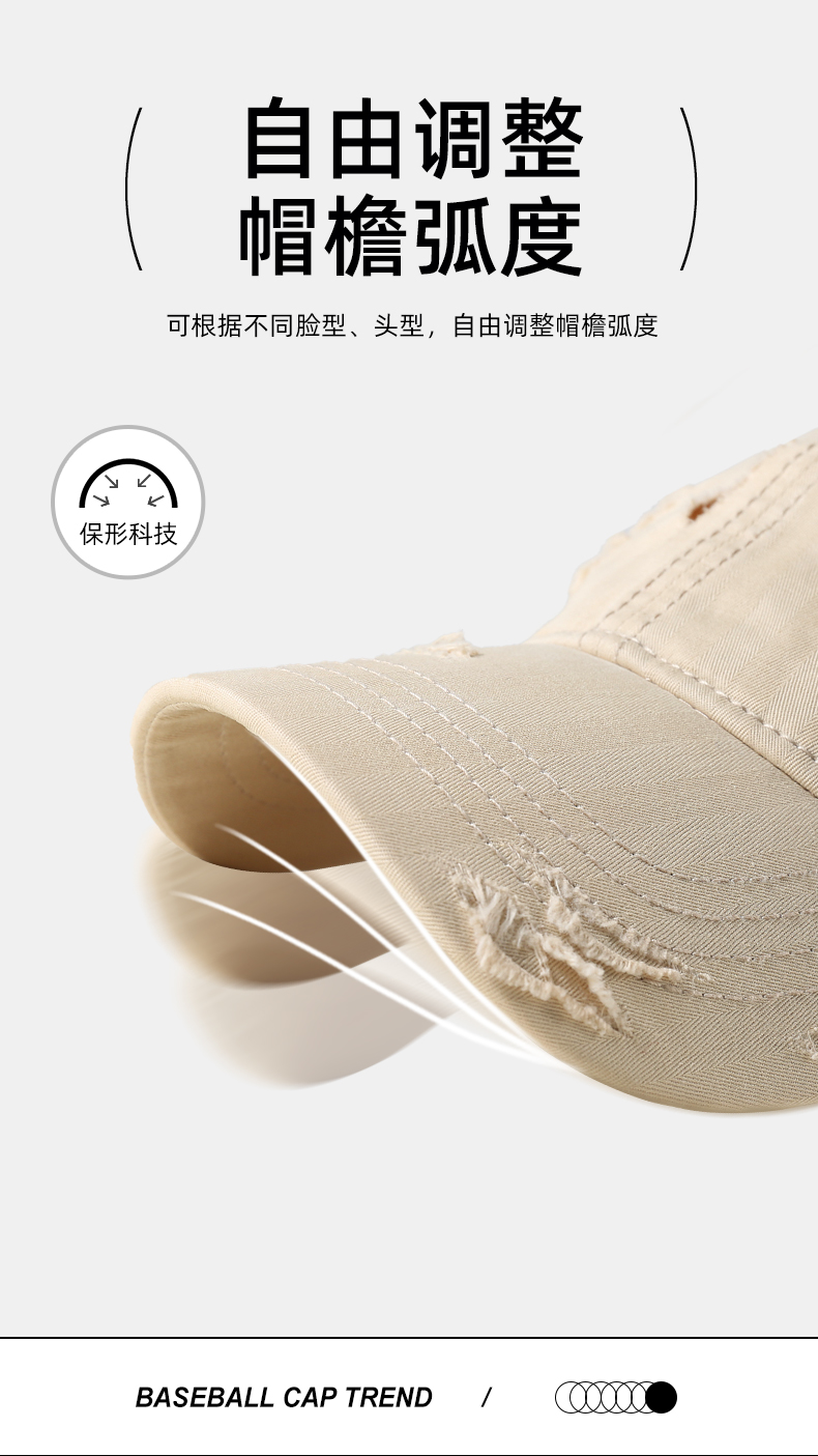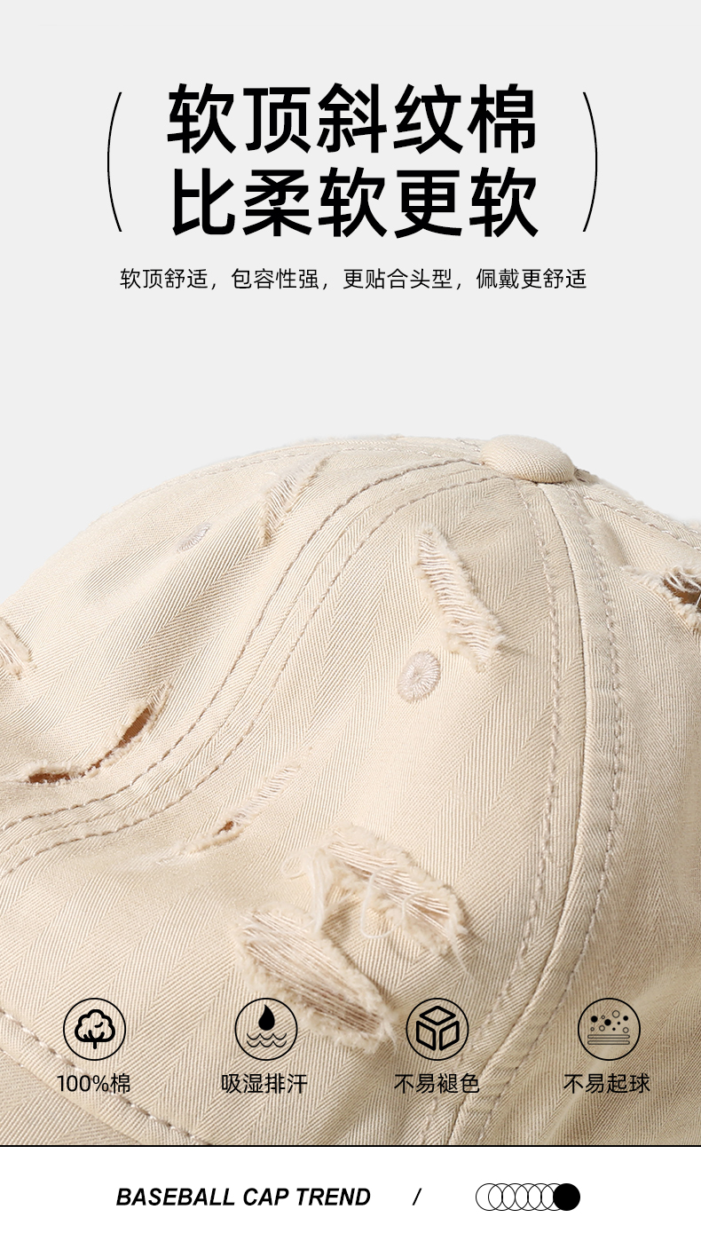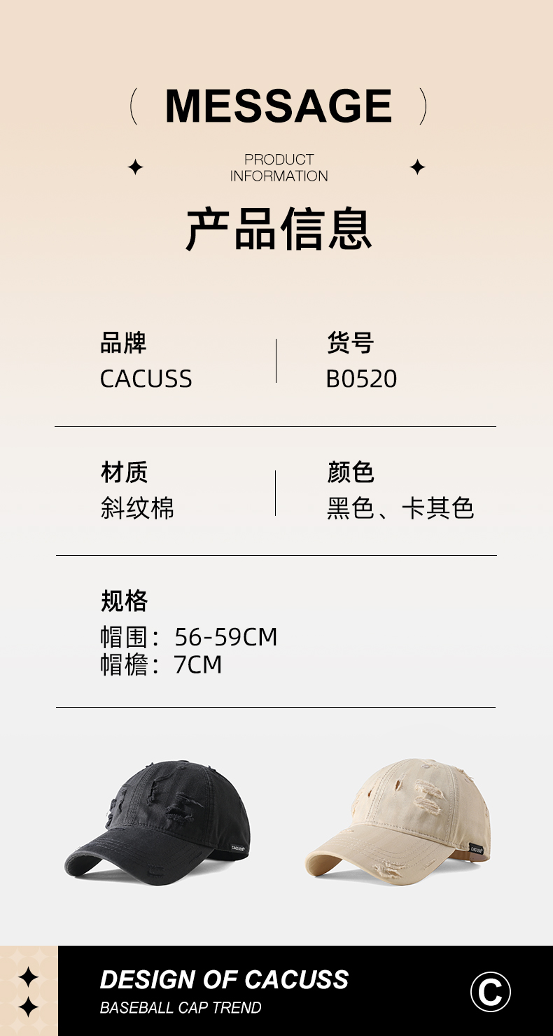 【CACUSS棒球帽破洞软顶休闲百搭】CACUSS棒球帽春夏新款时尚破洞软顶帽子防晒鸭舌帽休闲百搭0520
