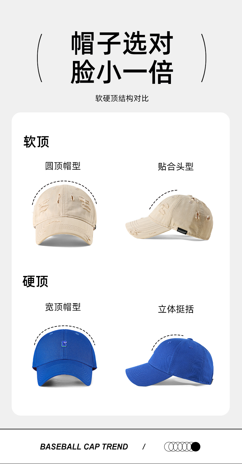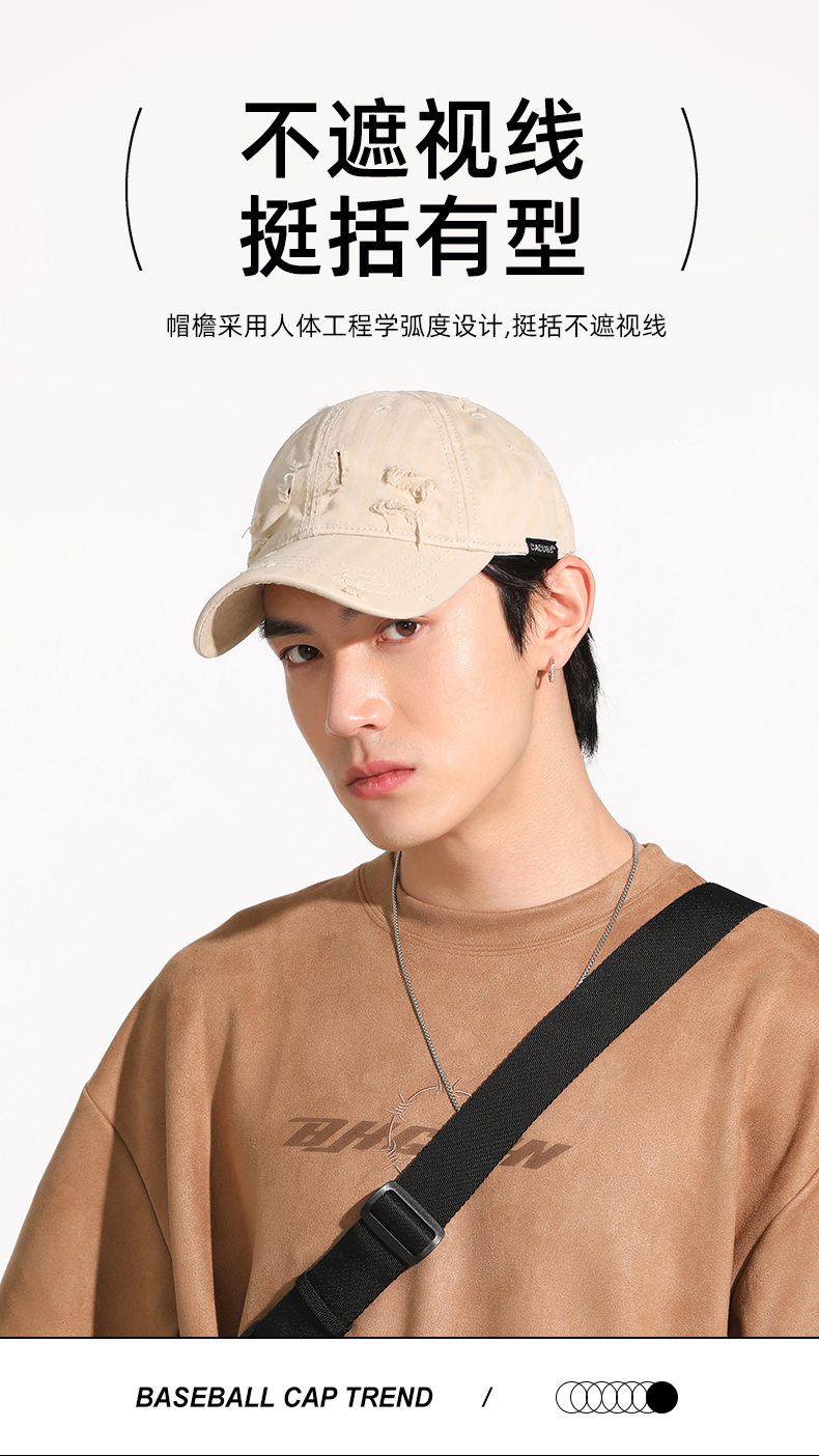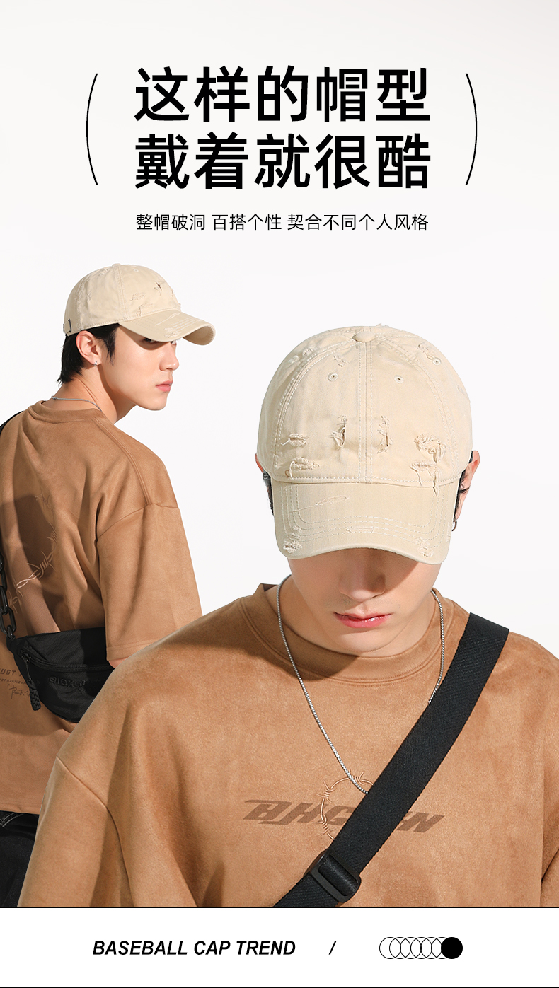 【CACUSS棒球帽破洞软顶休闲百搭】CACUSS棒球帽春夏新款时尚破洞软顶帽子防晒鸭舌帽休闲百搭0520