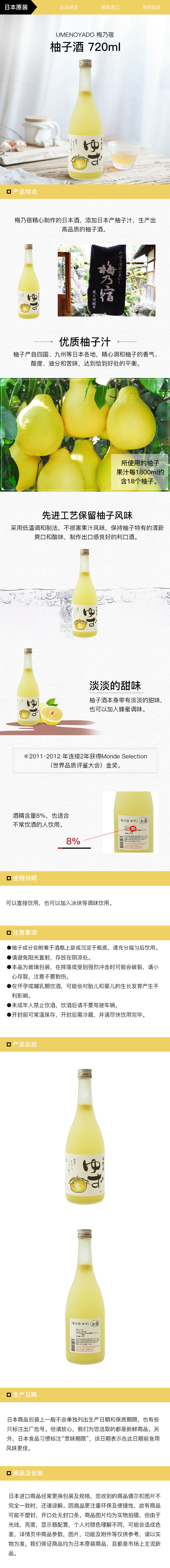 日本进口 UMENOYADO 梅乃宿||果酒||桃子酒/蜜柑/柚子酒/梅子 四种口味可选 720ml*LFYC*