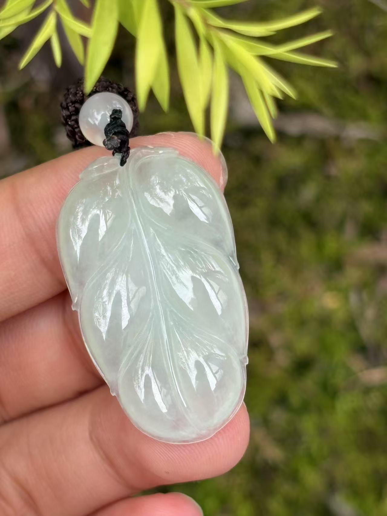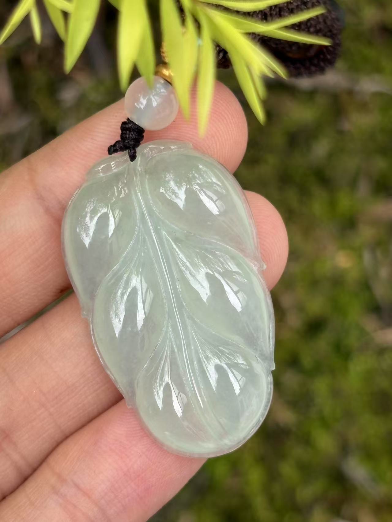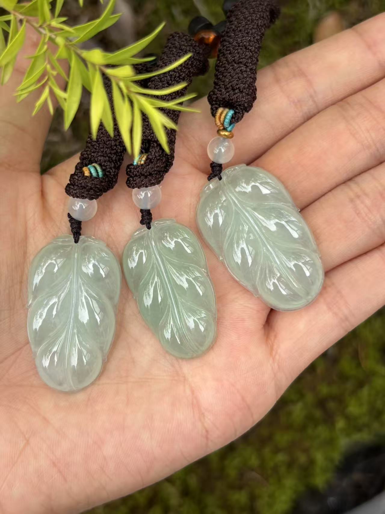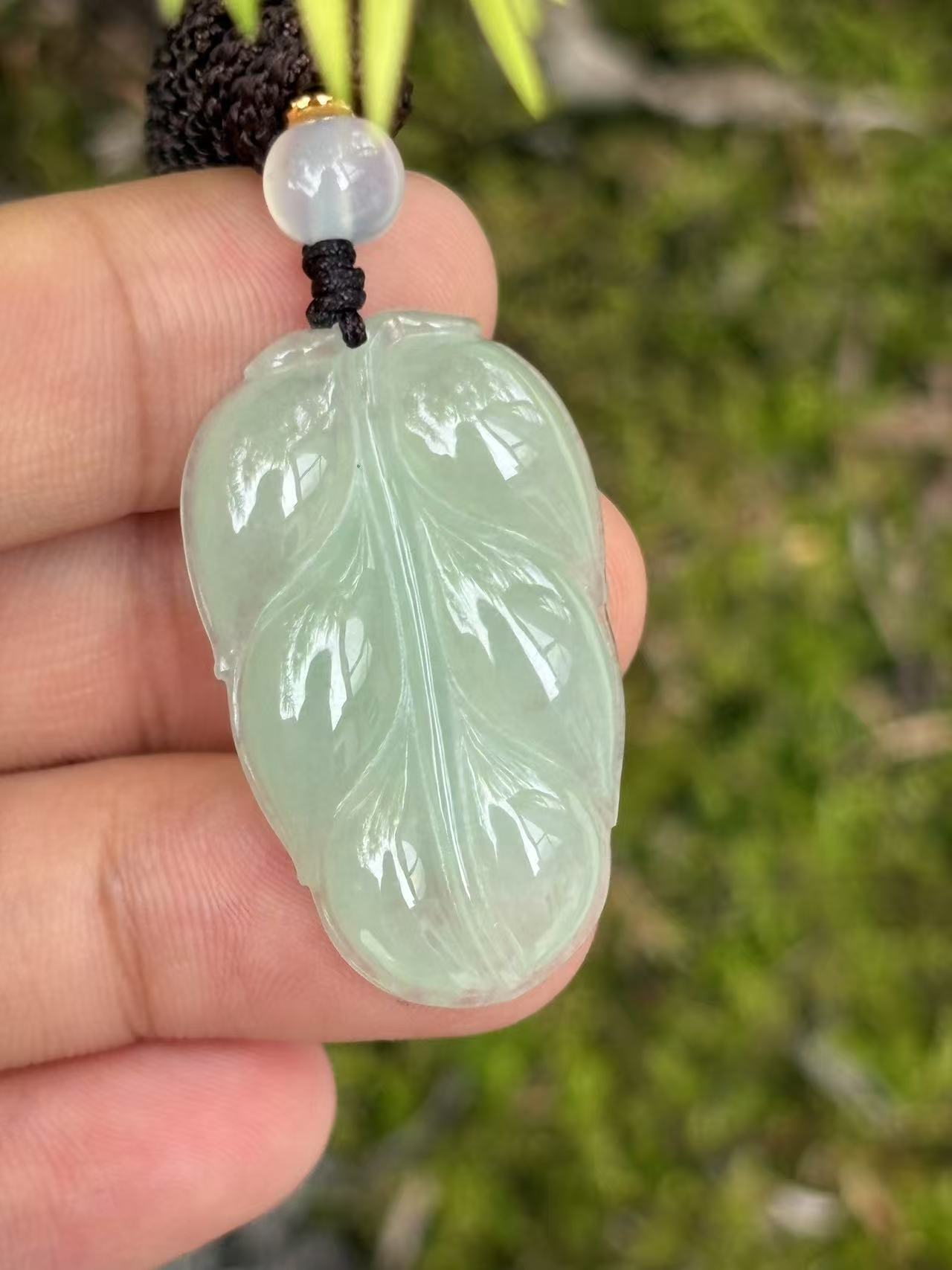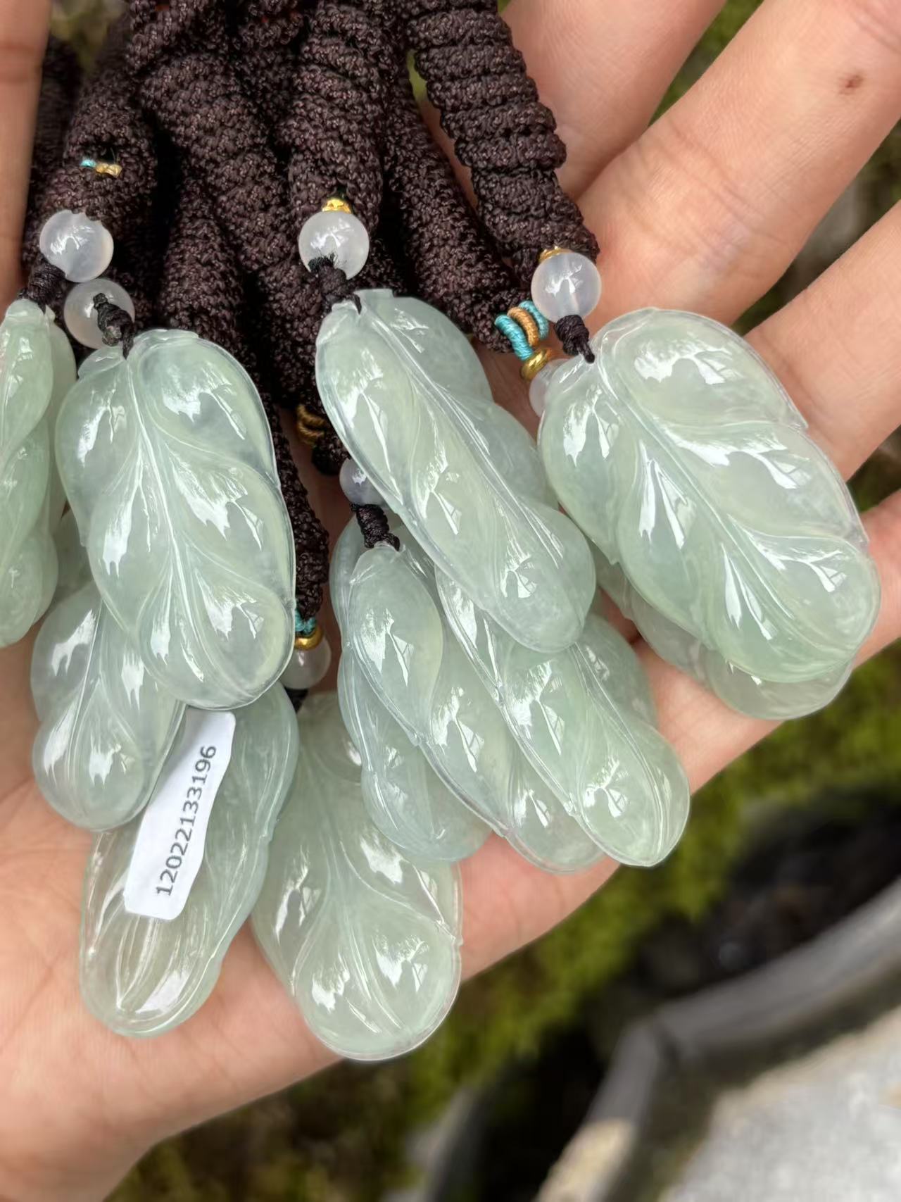 冰种晴水金枝玉叶,“叶”谐音“业”,寓意大业有成,步步高升。