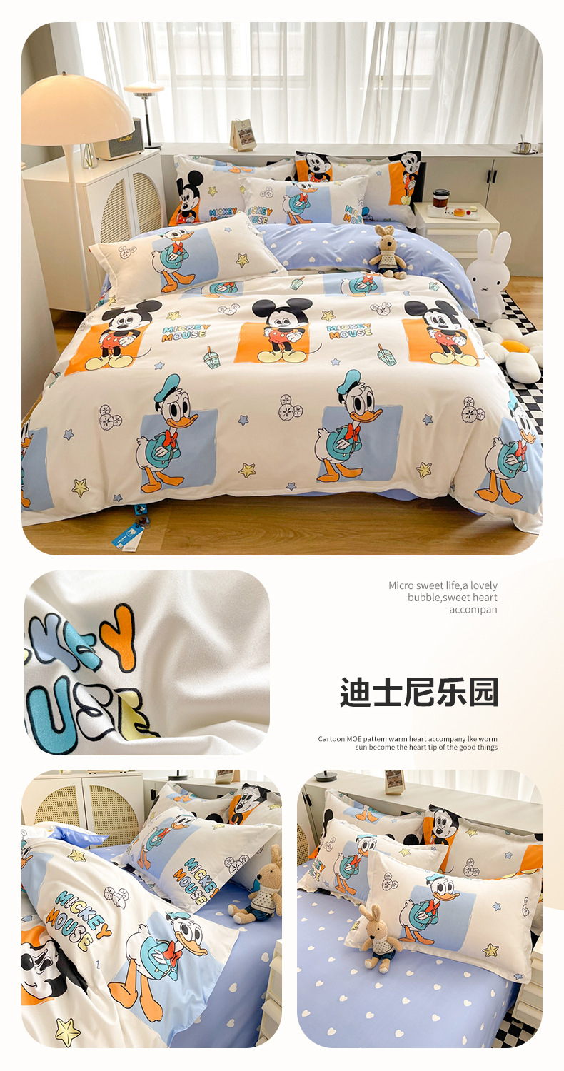 【迪士尼正版授权!超萌卡通水洗棉四件套】让孩子独享梦幻世界,让宿舍床铺瞬间变身精致温馨!亲肤柔软,舒适入睡;质地优良,耐用持久。学生宿舍必备!