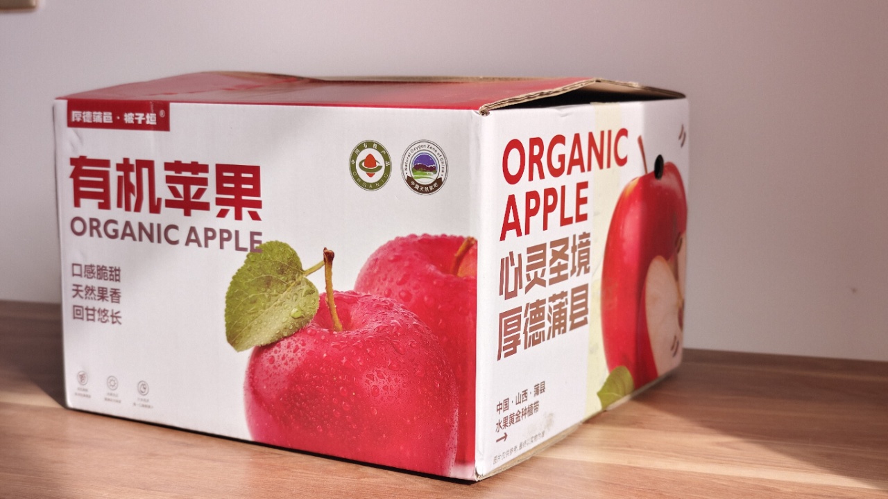有机种植的苹果,不用化学手段,当然没有那么漂亮,果面会有斑点、果锈钢、硬伤;果形不整齐,外观并不影响口感;