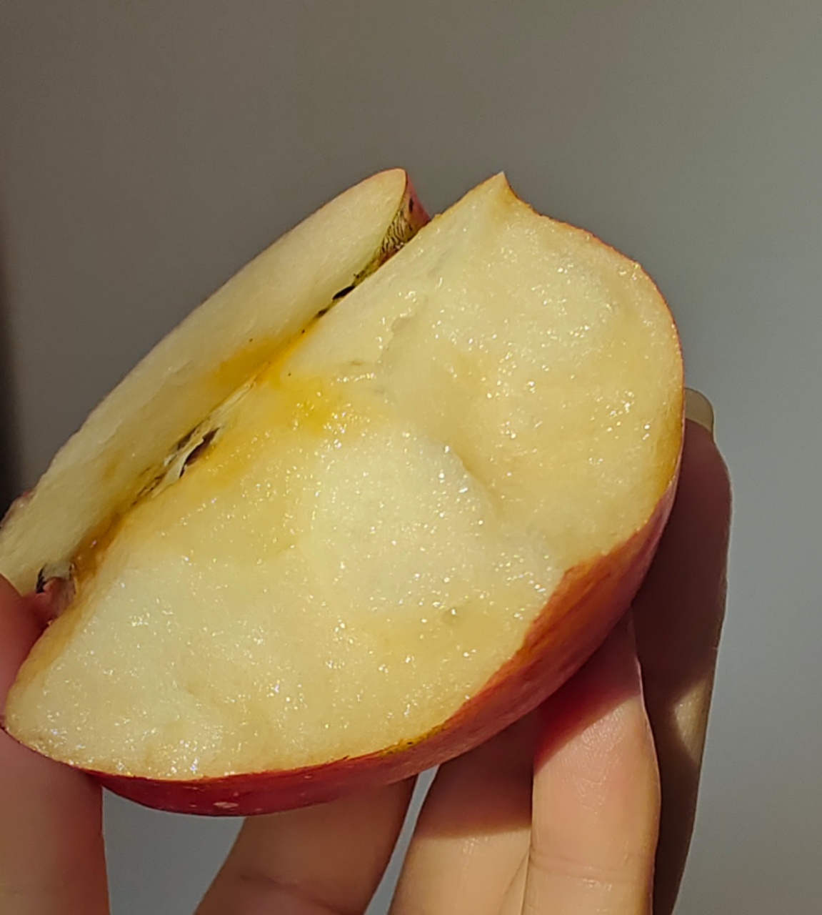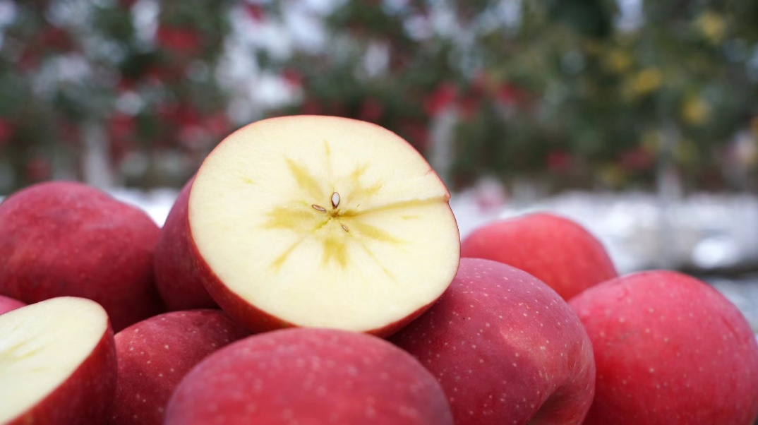 咬下的瞬间,伴随着“咔嚓”一声的清脆,清甜的果汁瞬间充盈口腔。果肉细腻无渣,糖分自然凝聚,形成独特的“冰糖心”,甜得醇厚而不腻,是记忆中最纯粹的苹果风味。