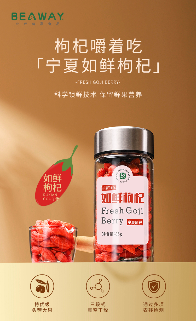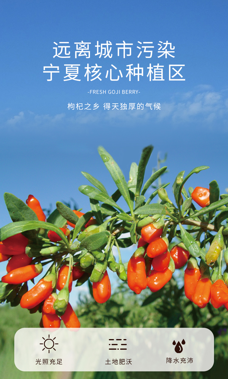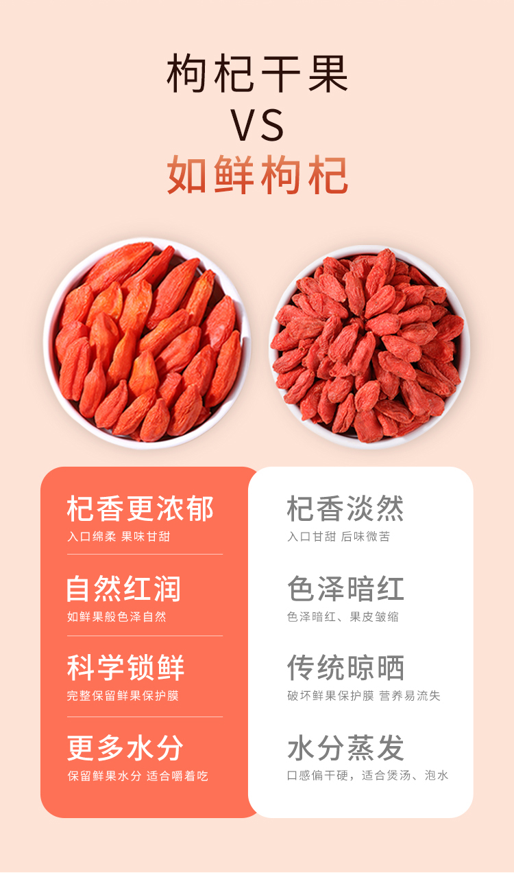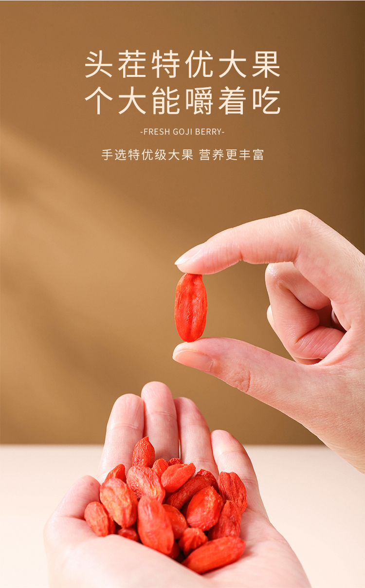 北纬纯净食品|38°宁夏头茬如鲜枸杞冻干精选特优颗粒无熏硫煲汤泡水