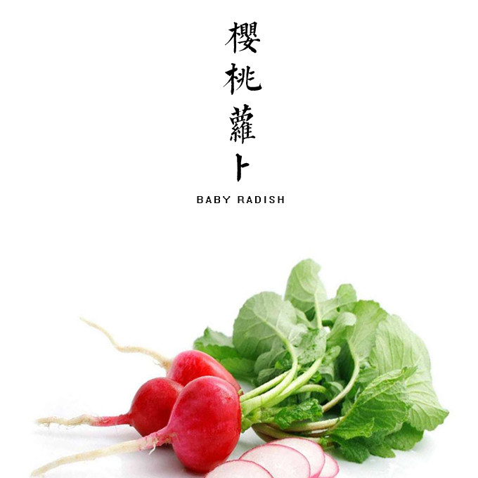 樱桃萝卜含丰富的维生素C,维生素A和B以及钙、磷、铁等微量元素也很丰富,含淀粉酶、葡萄糖、氧化酶腺素、甘酶、胆碱、芥子油等多种营养成分。