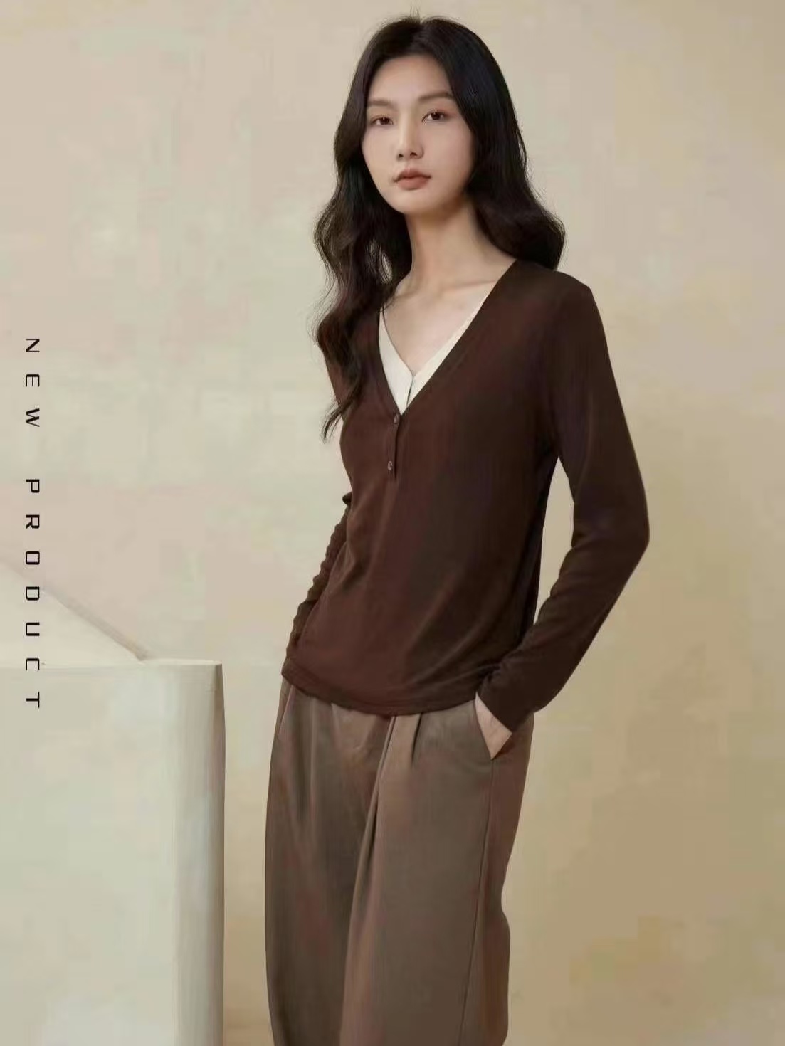 【品名】LS竹纤维女士时尚暖绒V领打底衫666