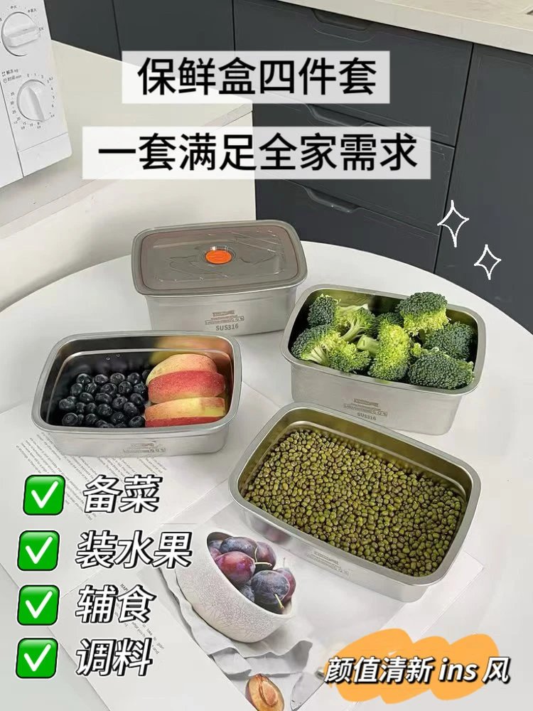 ✅ 一套四盒满足全家需求,颜值清新 ins 风,放餐桌上当摆盘都好看~
