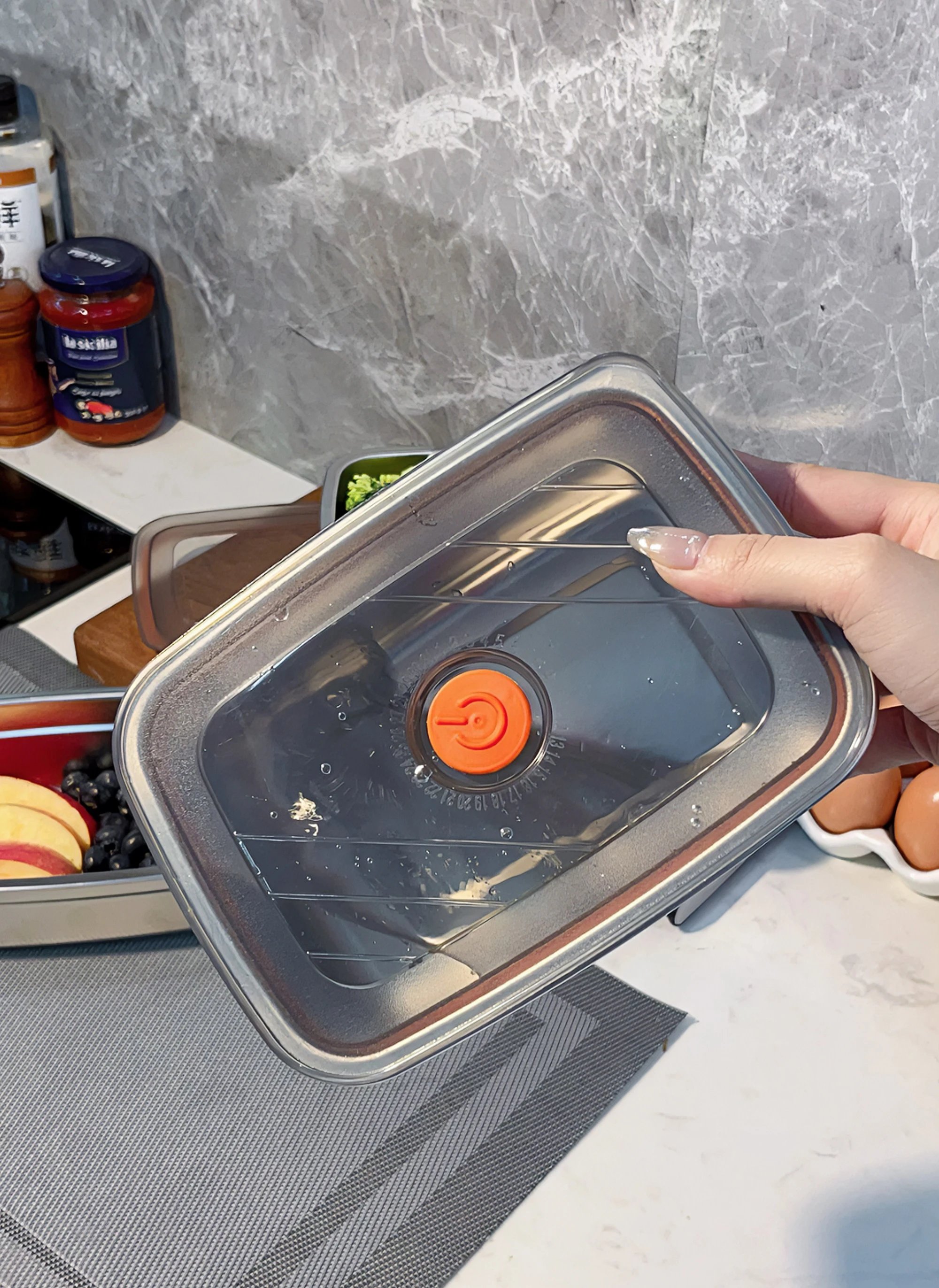 ✔️ 硅胶泄气孔:一按微真空锁鲜,一揭释放压力,轻松打开~