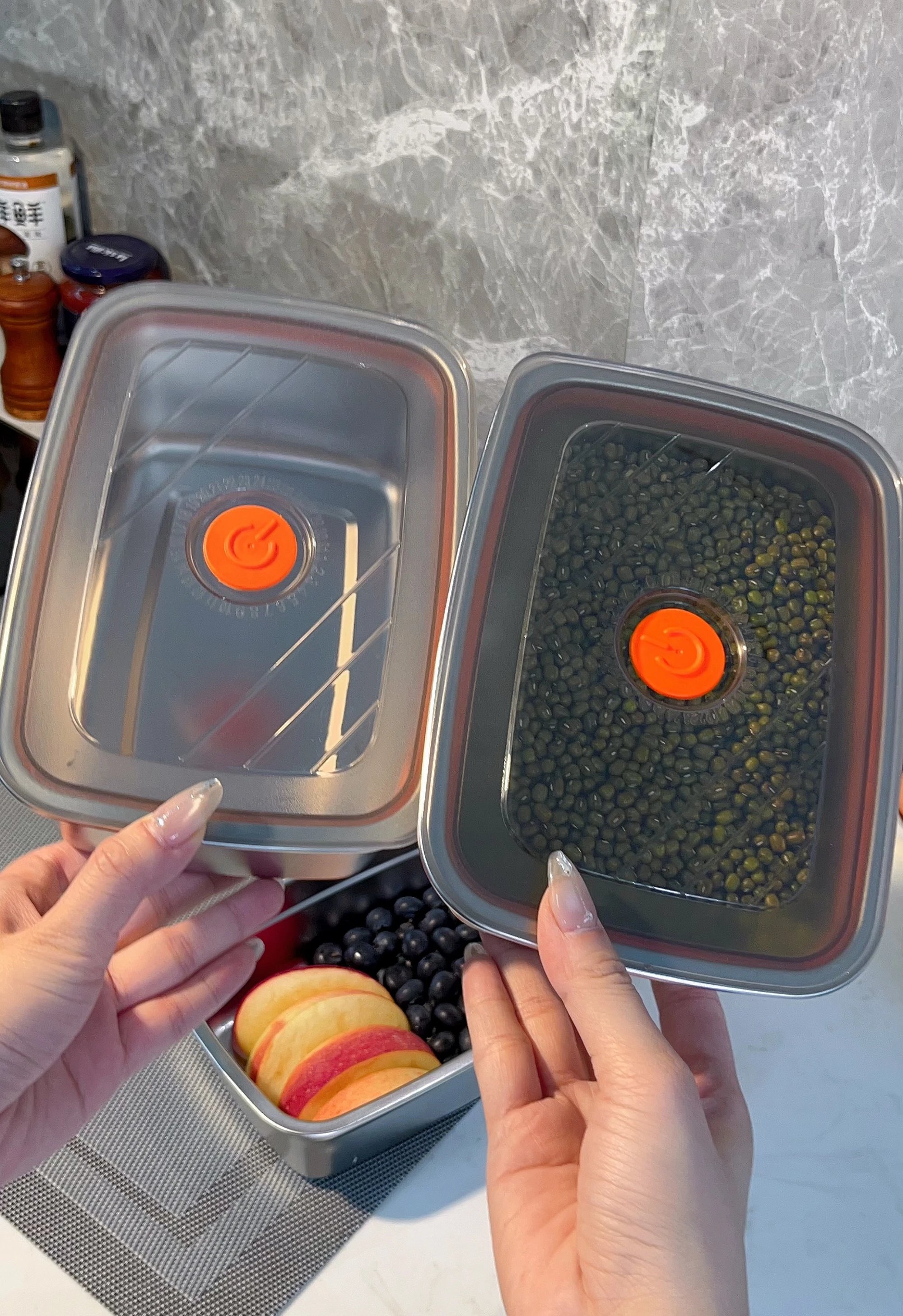 ✅ 硅胶泄气孔:一按微真空锁鲜,一揭释放压力,轻松打开~