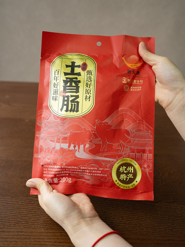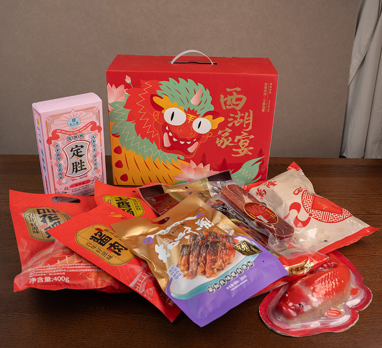 土香肠(非遗) 200克金华火腿自然块(非遗)250克锦鲤八宝饭(老字号) 350克万隆糯米藕(非遗) 450克知味观杭州熏鱼(非遗)200克新大康杭州叫花鸡(非遗) 300克知味观定胜糕(非遗) 152克