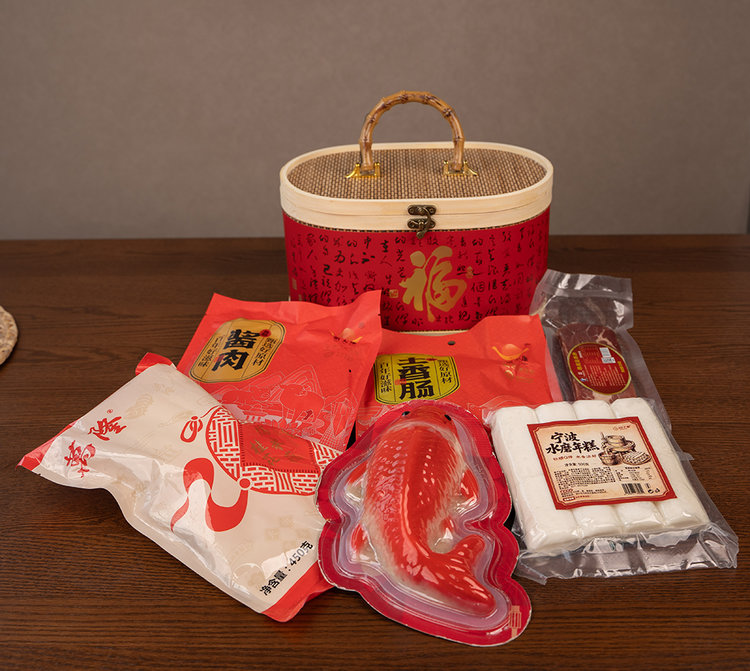 土香肠(非遗) 200克金华火腿自然块(非遗) 250克锦鲤八宝饭(老字号) 350克宁波水磨年糕(非遗) 500克万隆桂花糯米藕(非遗) 450克
