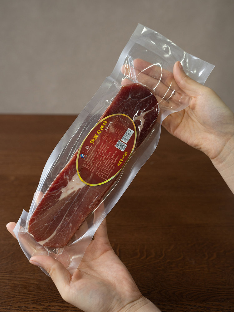 肥肉里包裹着瘦肉,瘦肉中夹着几丝肥膘,