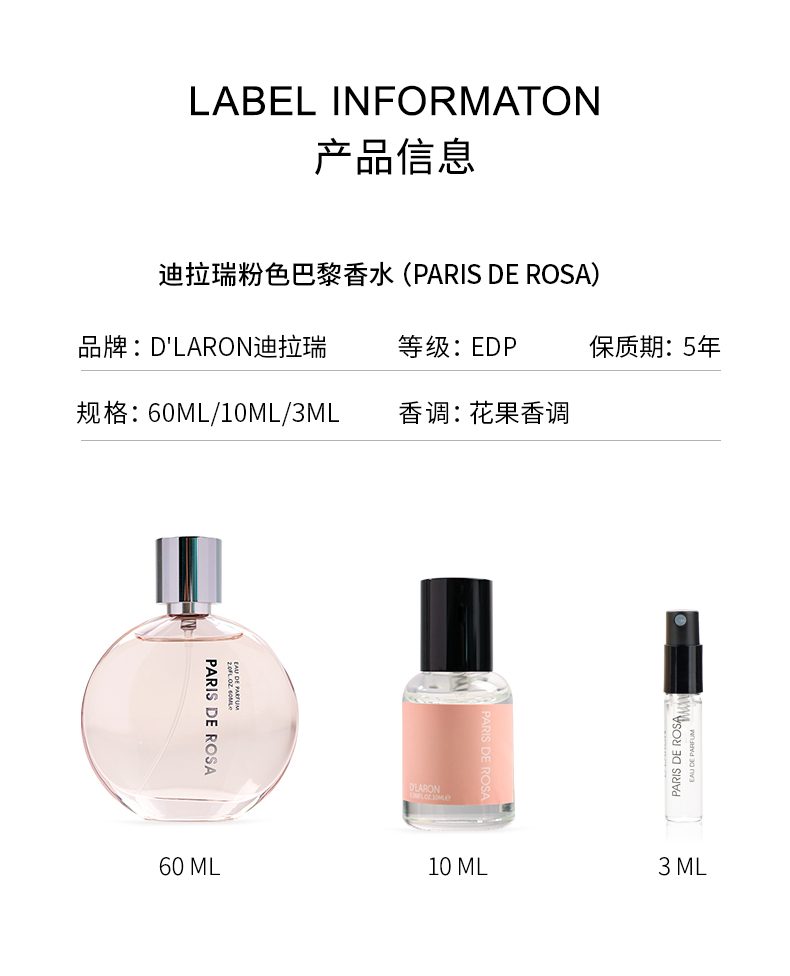 D'LARON 迪拉瑞巴黎系列 进口女士香水 持久留香 粉色巴黎