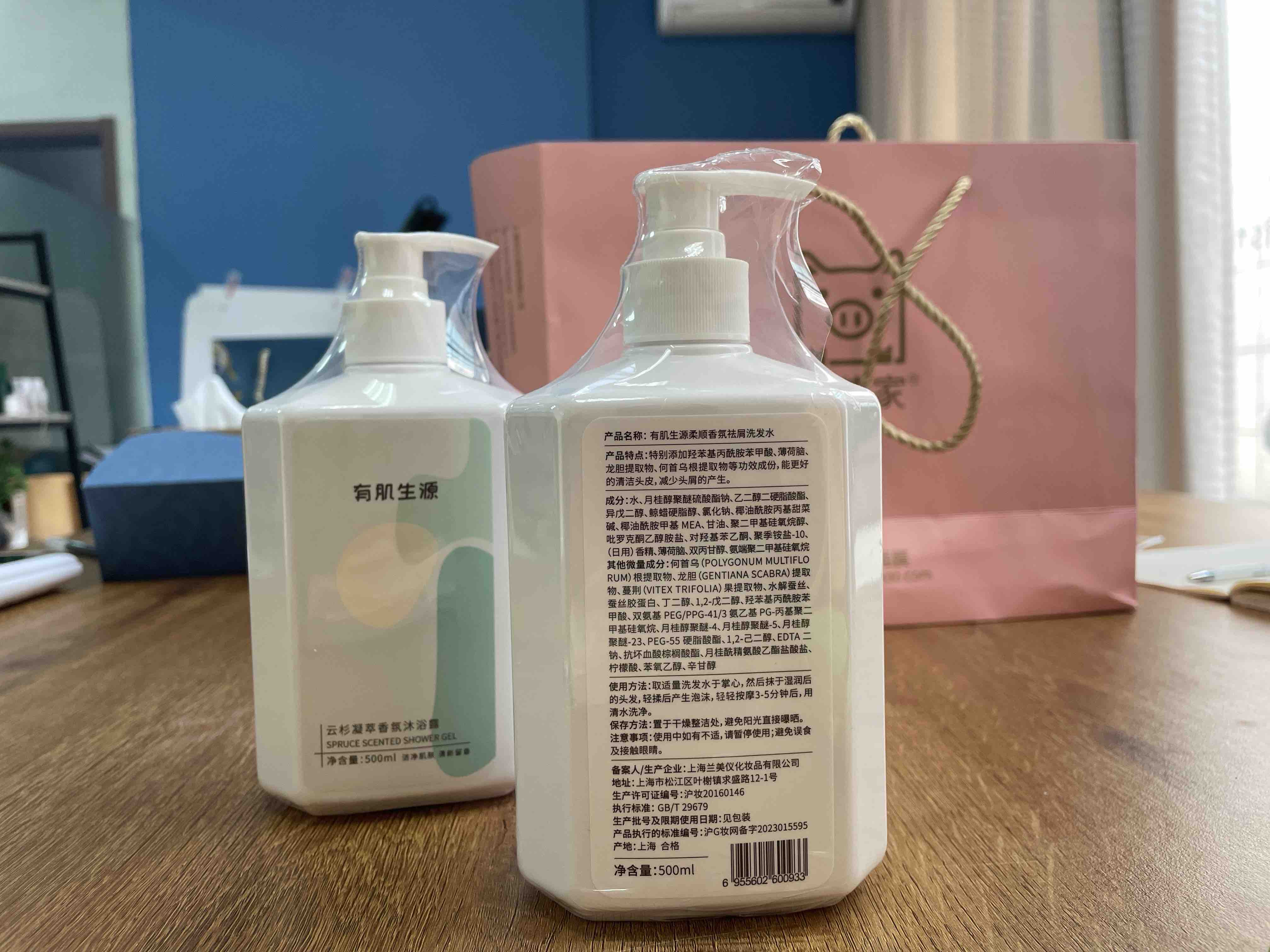 这套洗发沐浴组合是工厂一直强力推荐的,去年样品就陈列在我们会议室:但是工厂一边推荐一边还不愿意降低供货价,说功效检测老费钱了,净含量500ml成本老高了~哎哎,"轴"就一个字!