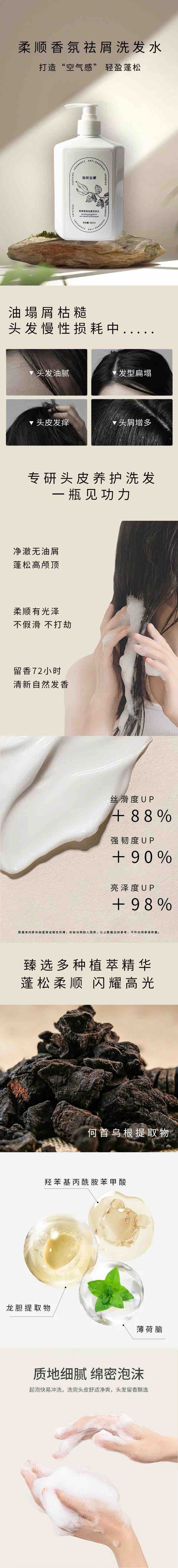 去屑柔顺洗发乳:由于薄荷添加,冲洗时有凉感,洗后头发手感挺、柔、顺,可能按摩得久冲得透彻,感觉头皮也很舒服;不过我没头皮屑,所以后续继续用回燕麦原浆头皮养护洗发乳🐽