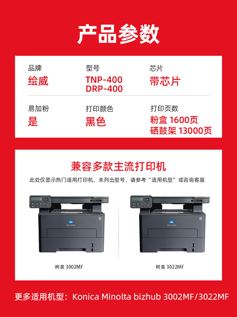 绘威TNP-400易加粉粉盒 适用美能达Konica Minolta bizhub 3002MF/3022MF