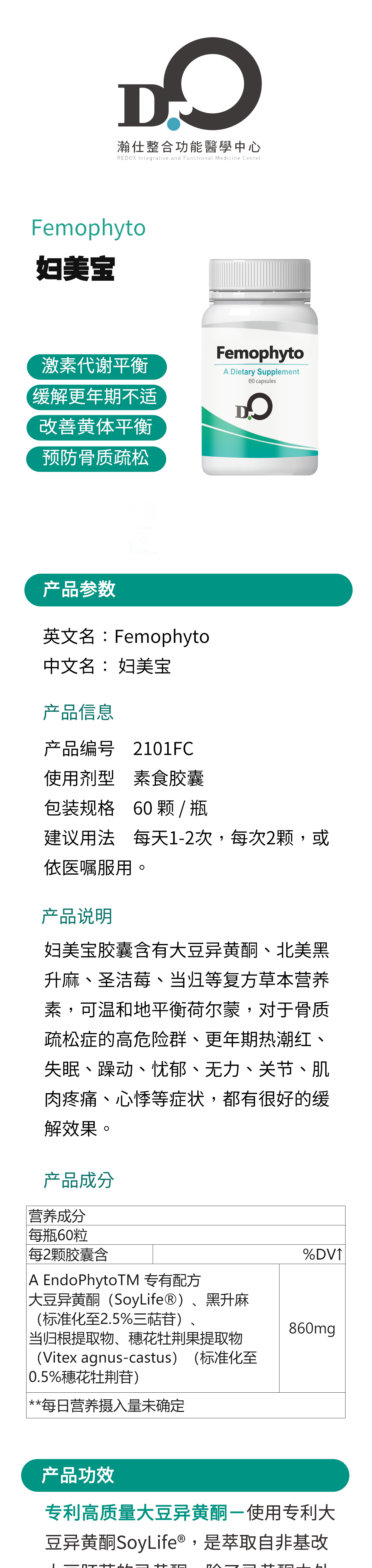 台湾瀚仕 妇美宝Femophyto #大豆异黄酮#北美黑升麻#圣洁莓萃取物#当归 【预售】