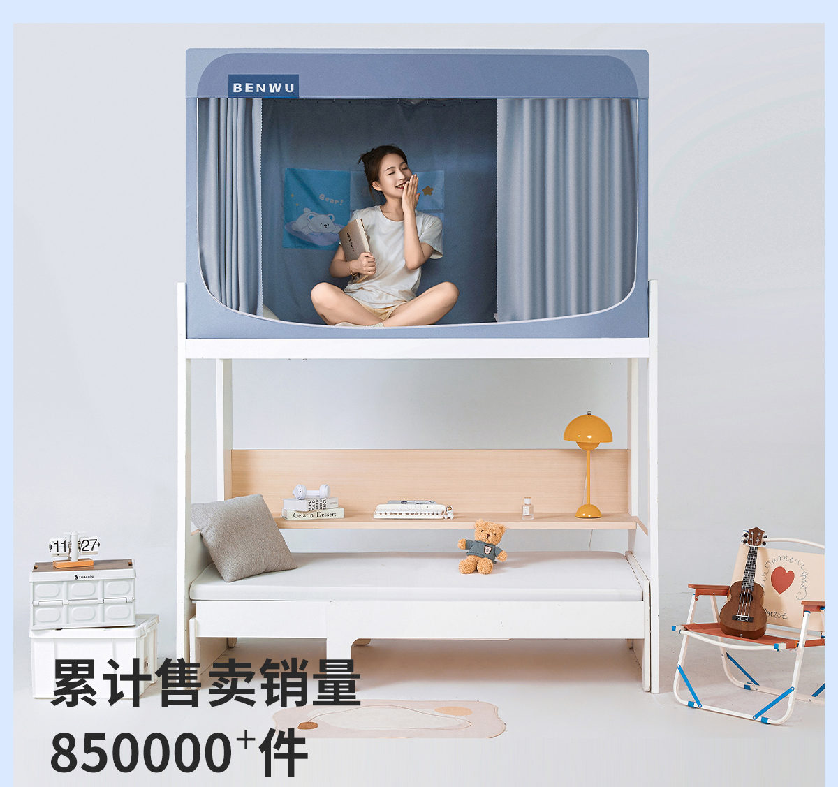 本屋创品学生宿舍遮光床帘蚊帐卡通床帘一体式上下铺专用高低床挡帘