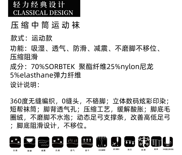 JINNMIX轻力野火中筒压缩透气减震运动跑步袜