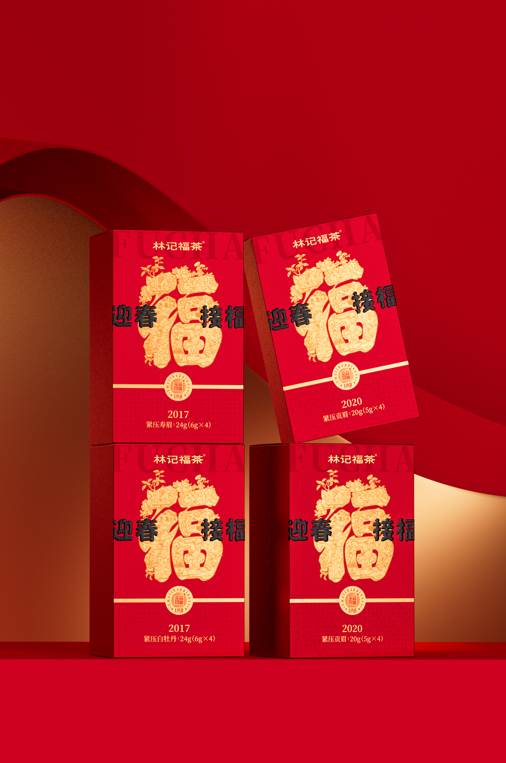 迎春接福·撬片紧压白牡丹/寿眉2017/紧压贡眉2020/金花白茶2019·礼盒装224g