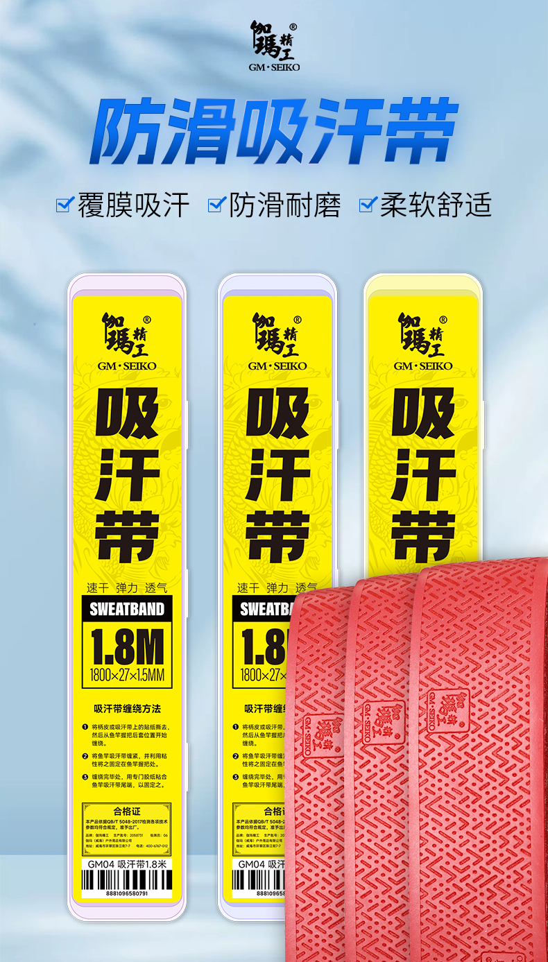 【拍1发2】伽玛精工1.8米加长吸汗带鱼竿缠绕把带