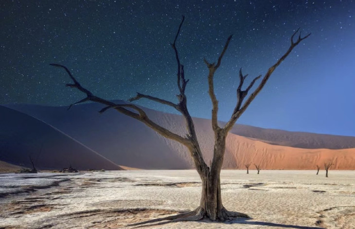 沙漠日出拍摄,驱车前往拍沙丘奇景死亡谷,棵棵屹立了几百年的骆驼刺树孑然伫立,苍凉壮美抵达后步行进入死亡谷拍摄千年古树及壮观的红色沙丘,拍摄及观赏全球最高的沙丘日落。