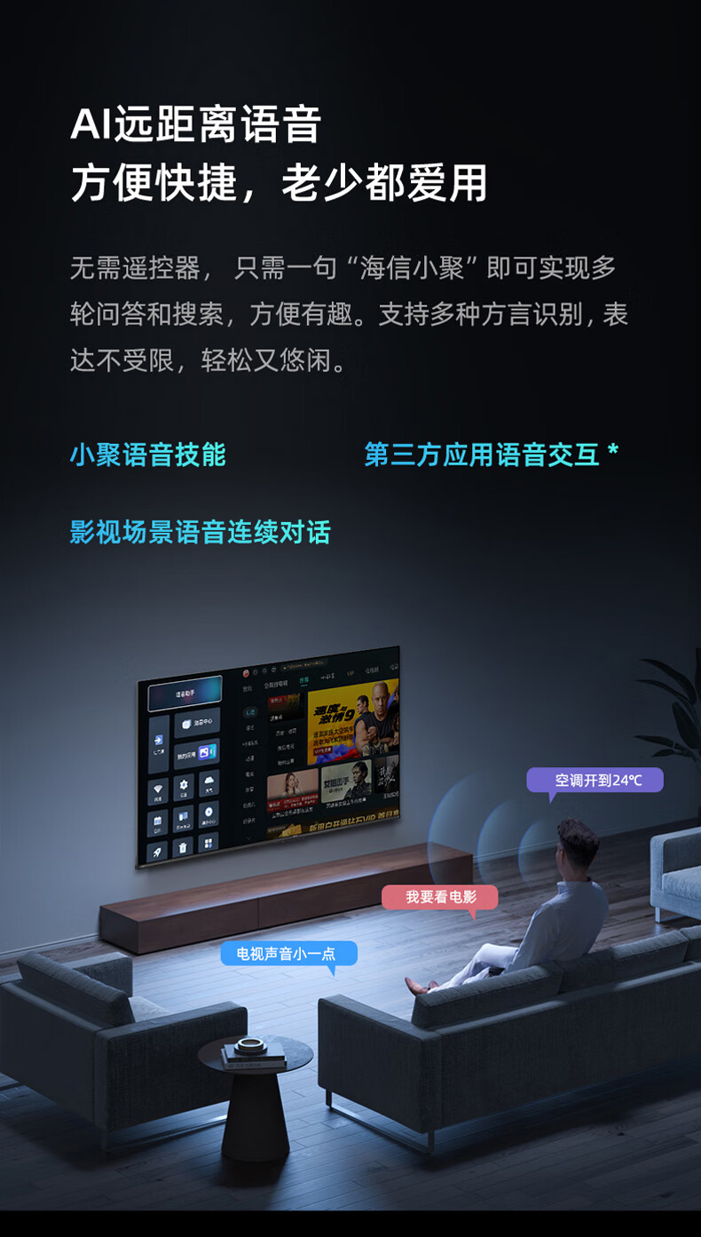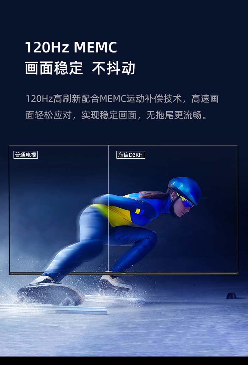 海信电视 75英寸 120Hz高刷 MEMC运动补偿 全能投屏 2+32GB AI内容感知 远距离语音 超薄液晶电视 75D3KH