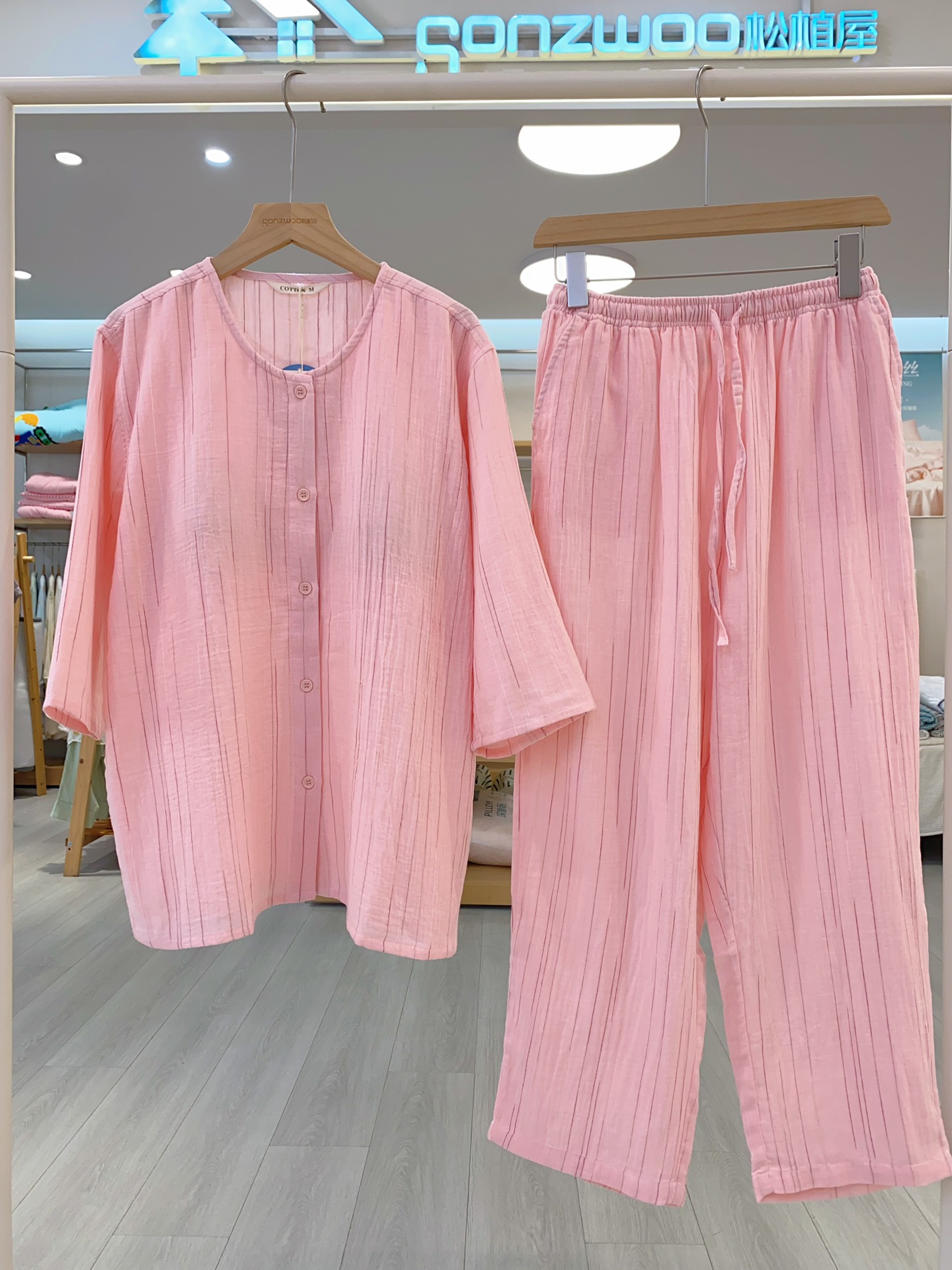 松植屋女款中袖长裤新中式睡衣套装
