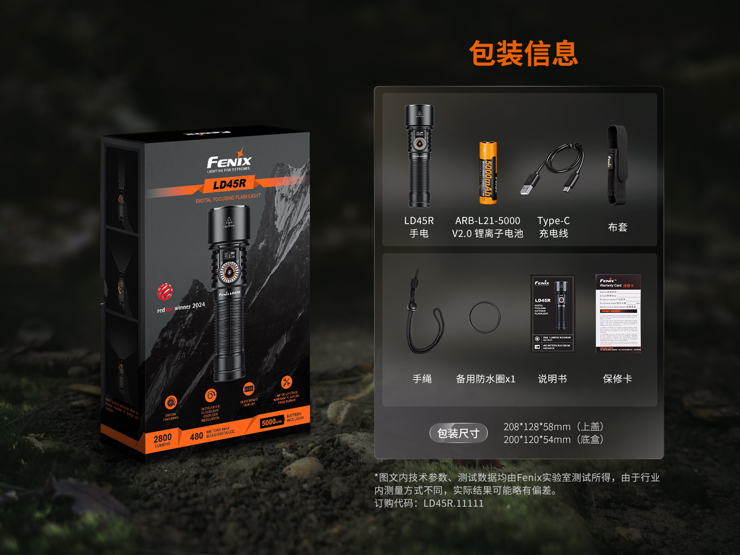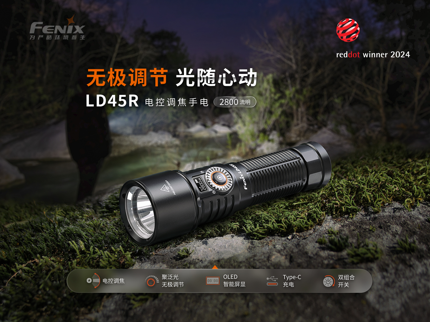 Fenix菲尼克斯LD45R电子变焦手电筒21700电池强光2800流明远射高亮8级防水手电筒