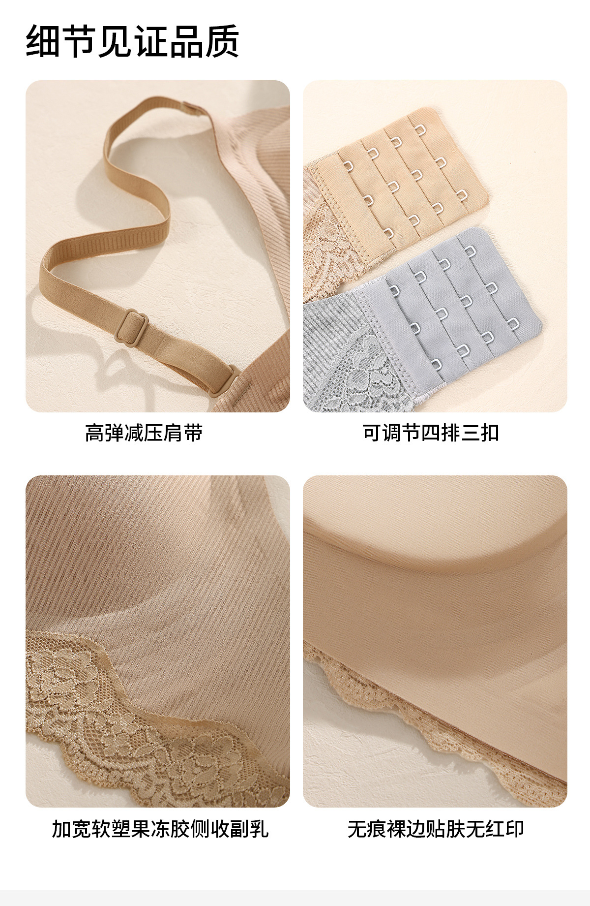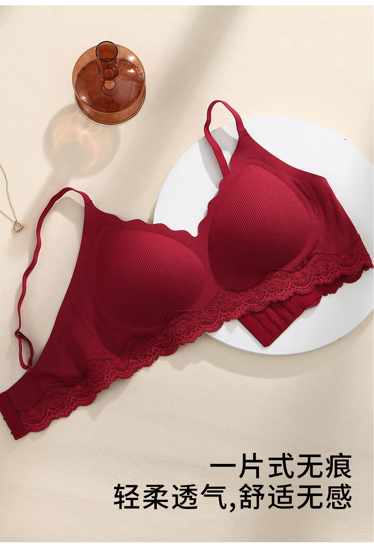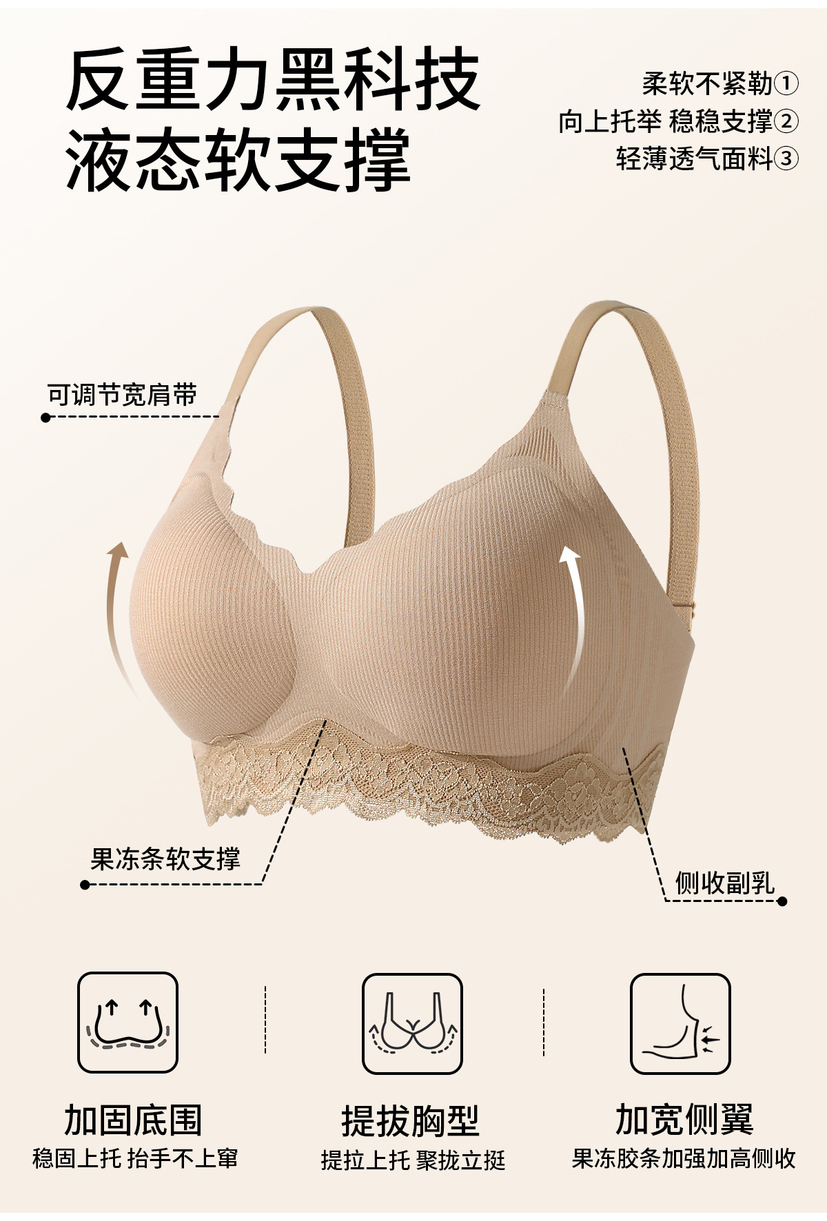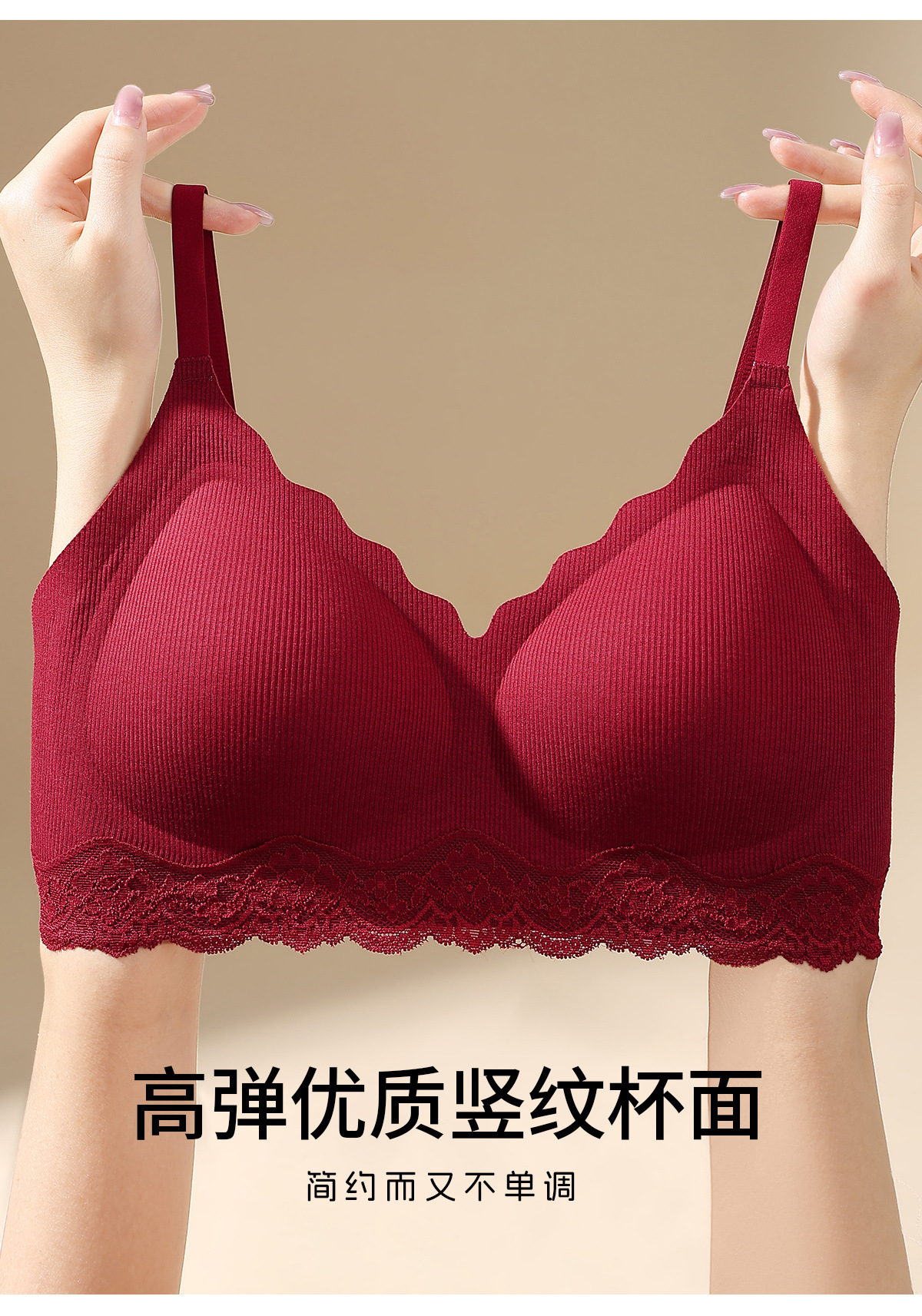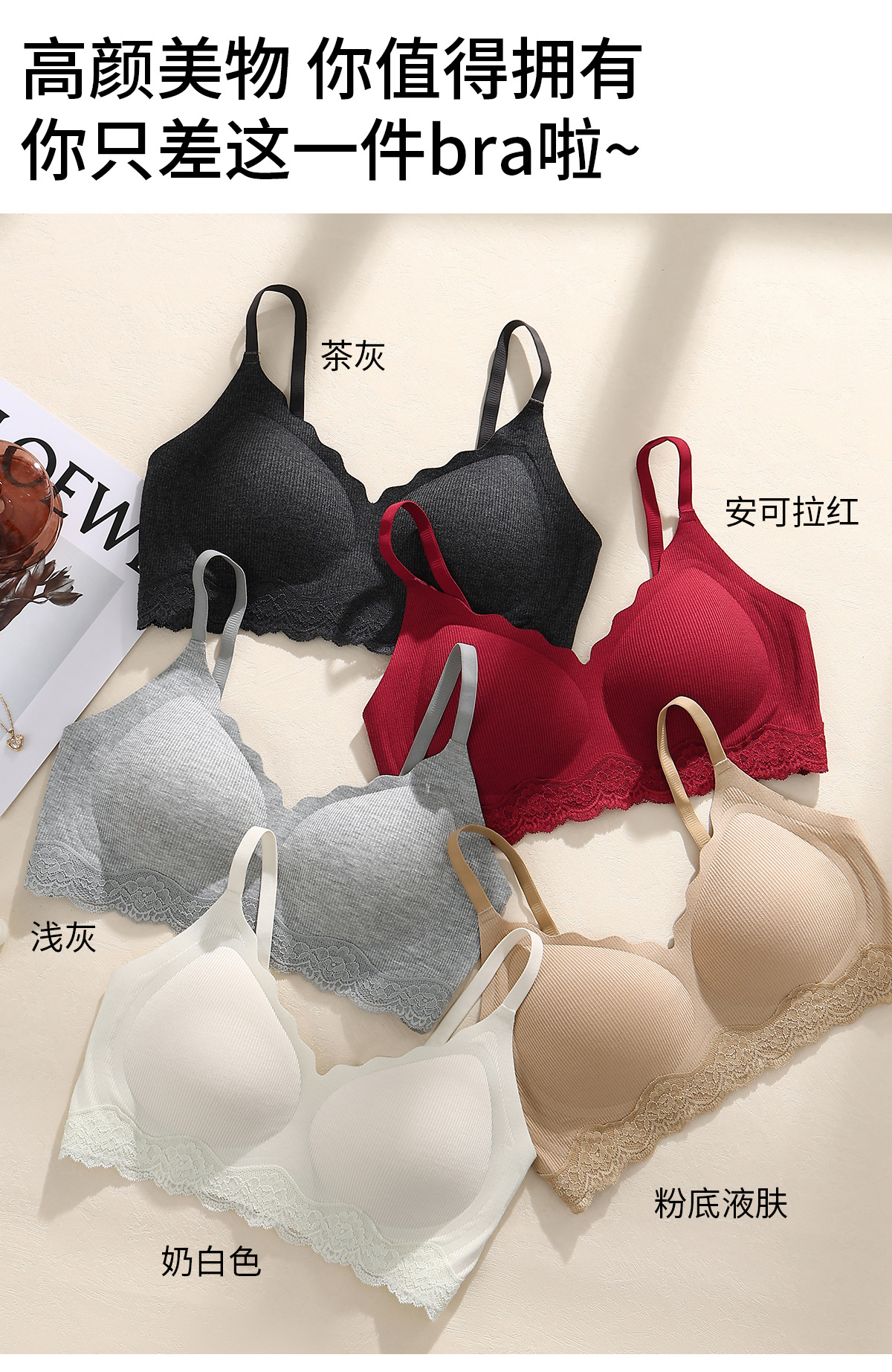 春节不打烊【高弹螺纹精致蕾丝❗️精致贴合显瘦美背】无痕内衣女士小胸聚拢空杯收副乳防垂上托无钢圈文胸罩女蕾丝内衣。jc