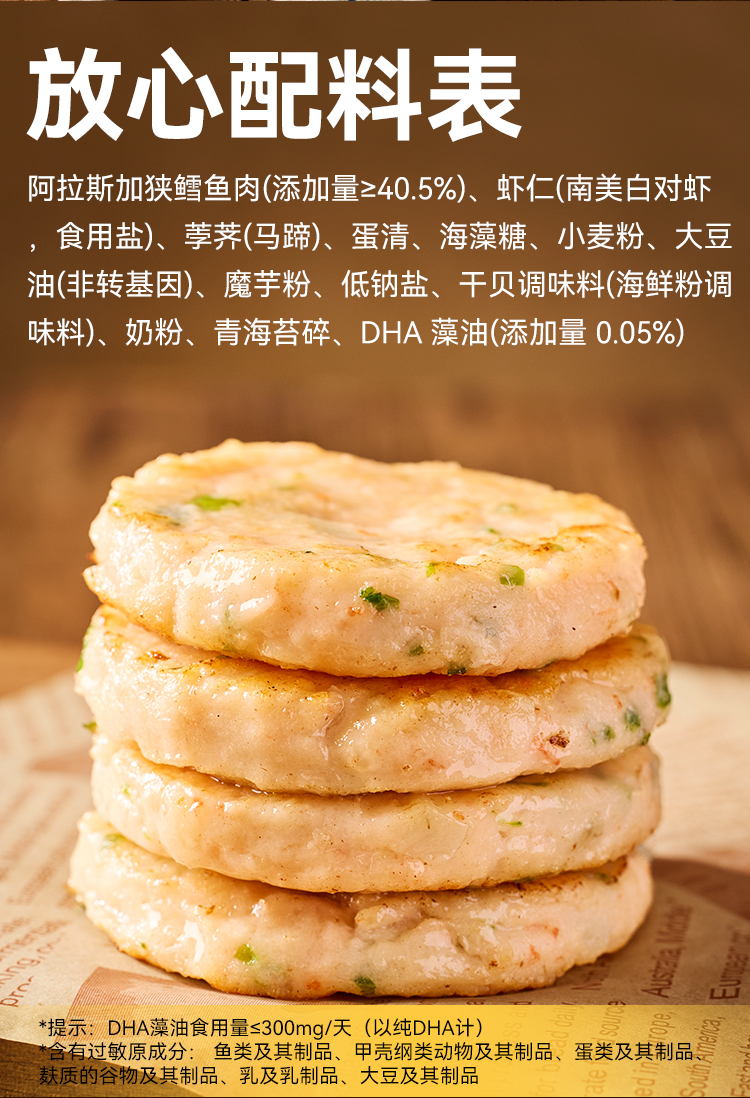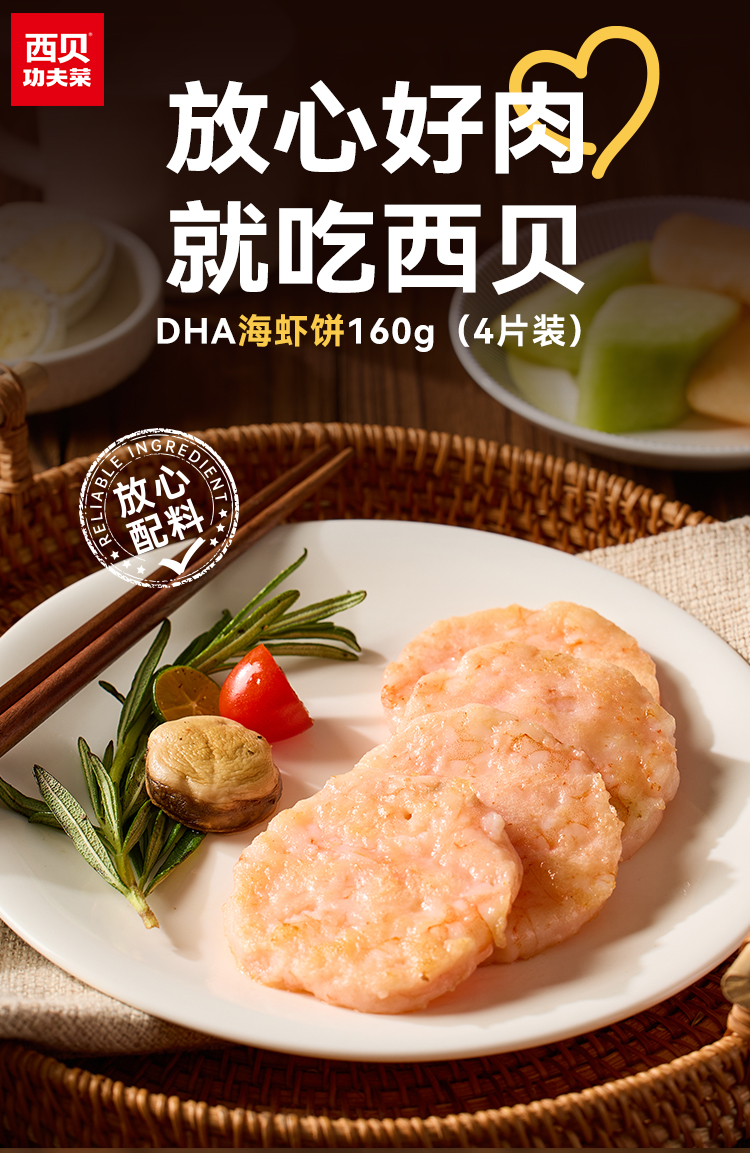 西贝DHA海虾鳕鱼饼 双重蛋白营养,口感丰富。每盒160g(4片装)【社群】