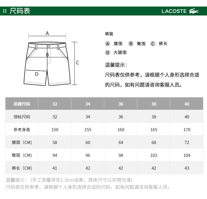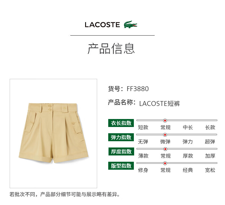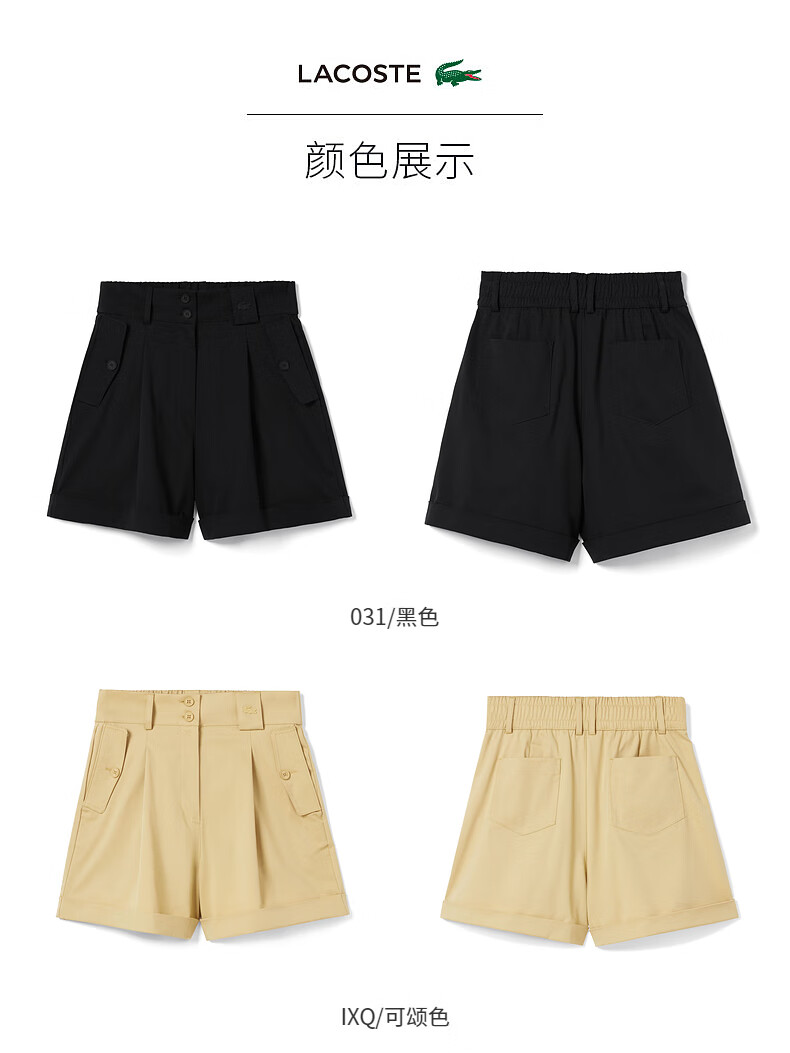 【海南专供价】Lacoste法国鳄鱼女装 新款时尚宽松休闲短裤工装裤FF3880-98