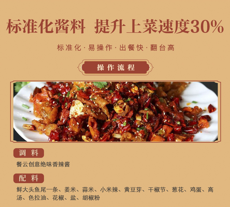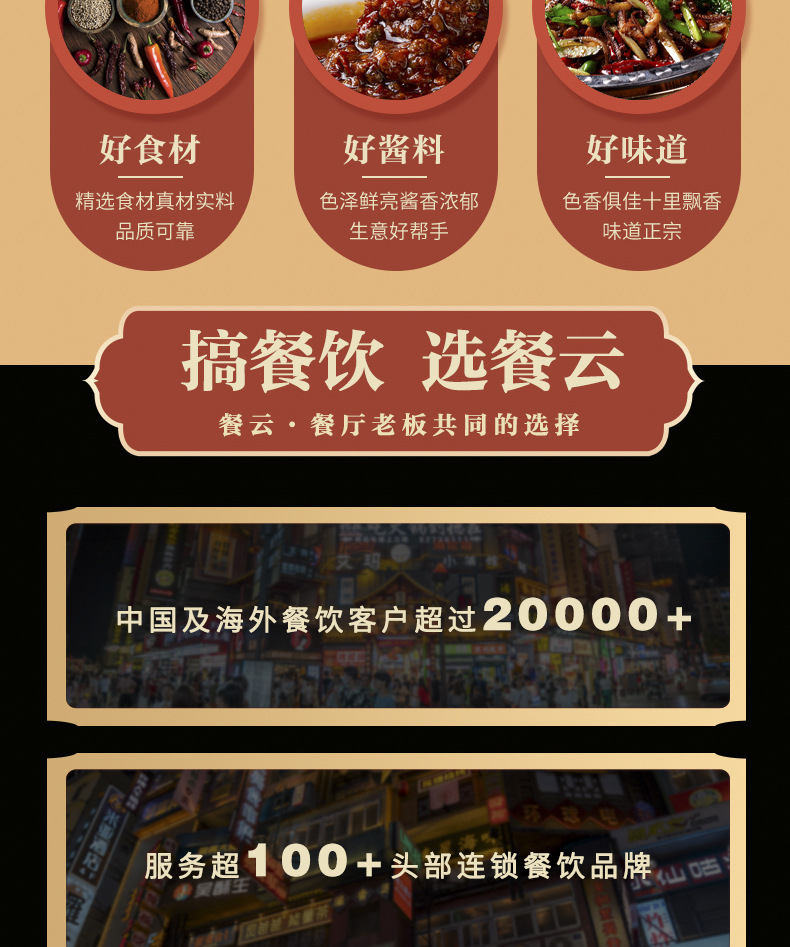 餐云标准化酱料为餐饮节约厨房人工成本30%,无厨师经验从业者通过标准化流程亦可操作,30名国内中餐大厨专家365天持续研发创新!