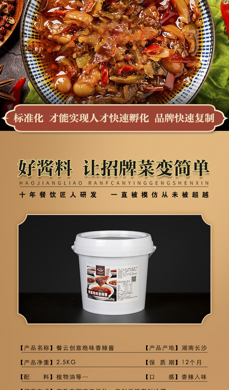 餐云绝味香辣酱 香辣特色菜肴调味专用酱料 标准化香辣味型更多年轻消费群体喜欢的味道 (5斤装一桶做50份)